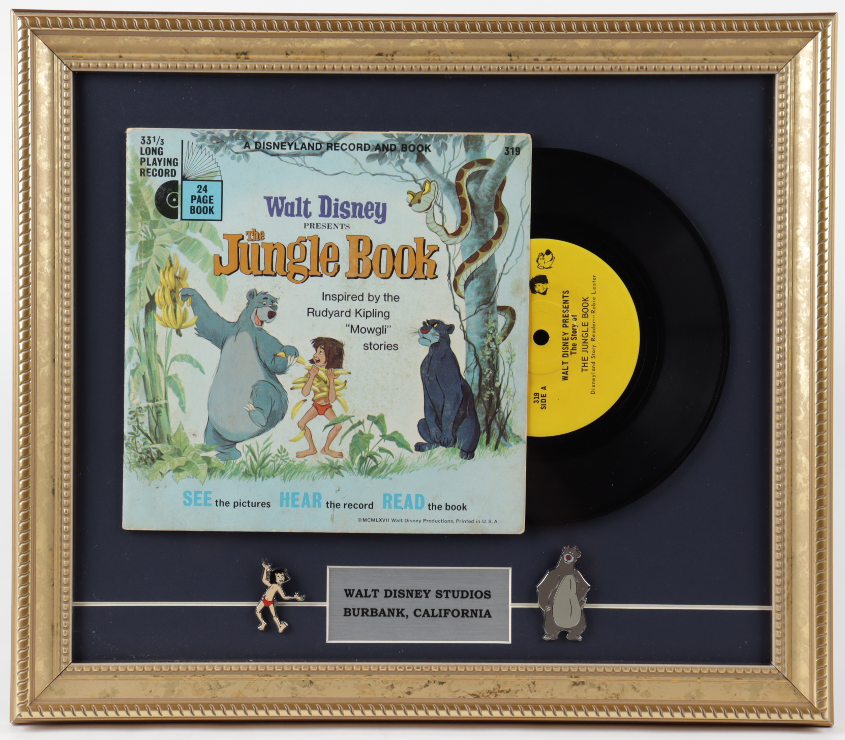 Vintage "The Jungle Book" 13x15 Custom Framed Vinyl Record Display with (2) Jungle Book Pins
