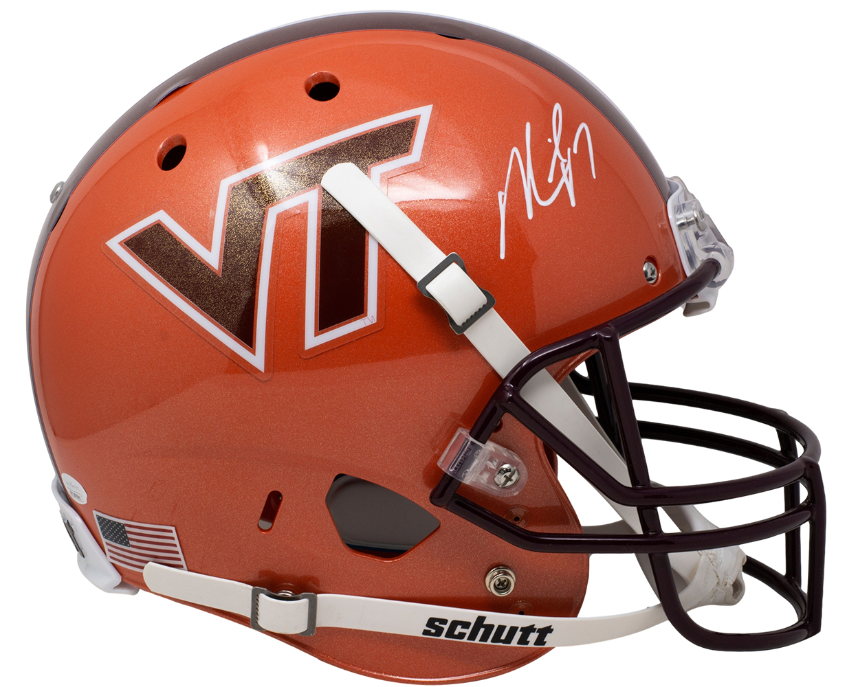 Schutt Virginia Tech Hokies full-size replica helmet. Hand-signed by Michael Vick.
