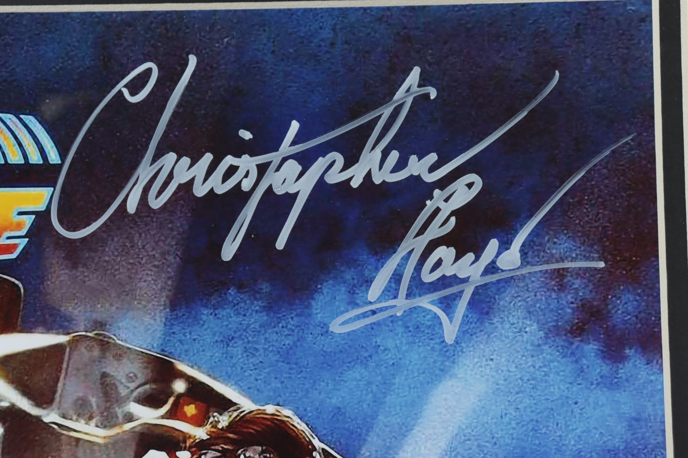 Custom frame measures approximately 17.25" x 24.25" in size and features a poster that has been hand-signed by Christopher Lloyd (Emmett "Doc" Brown).