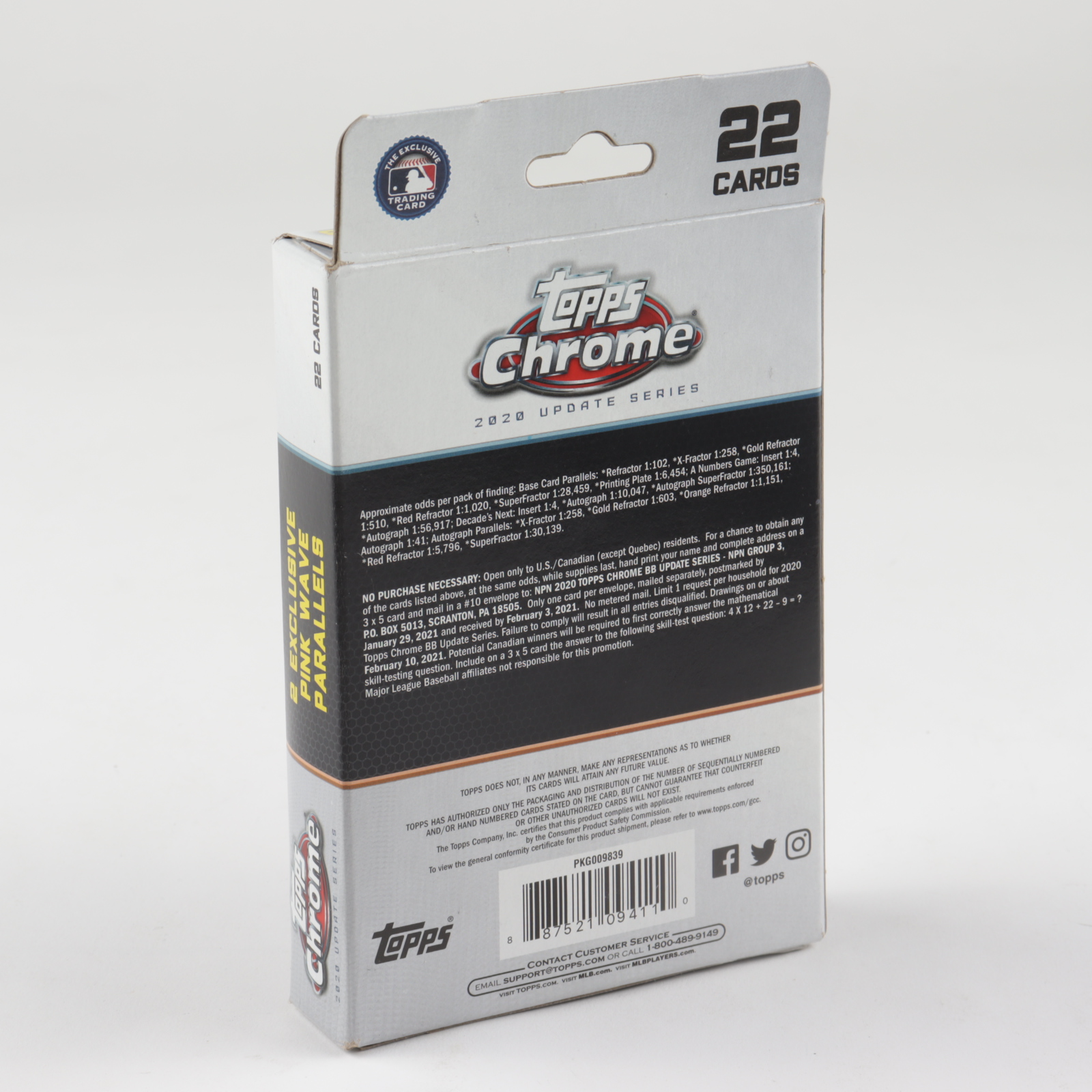 2020 Topps Chrome Baseball Update Series Hanger Box with (22) Cards
