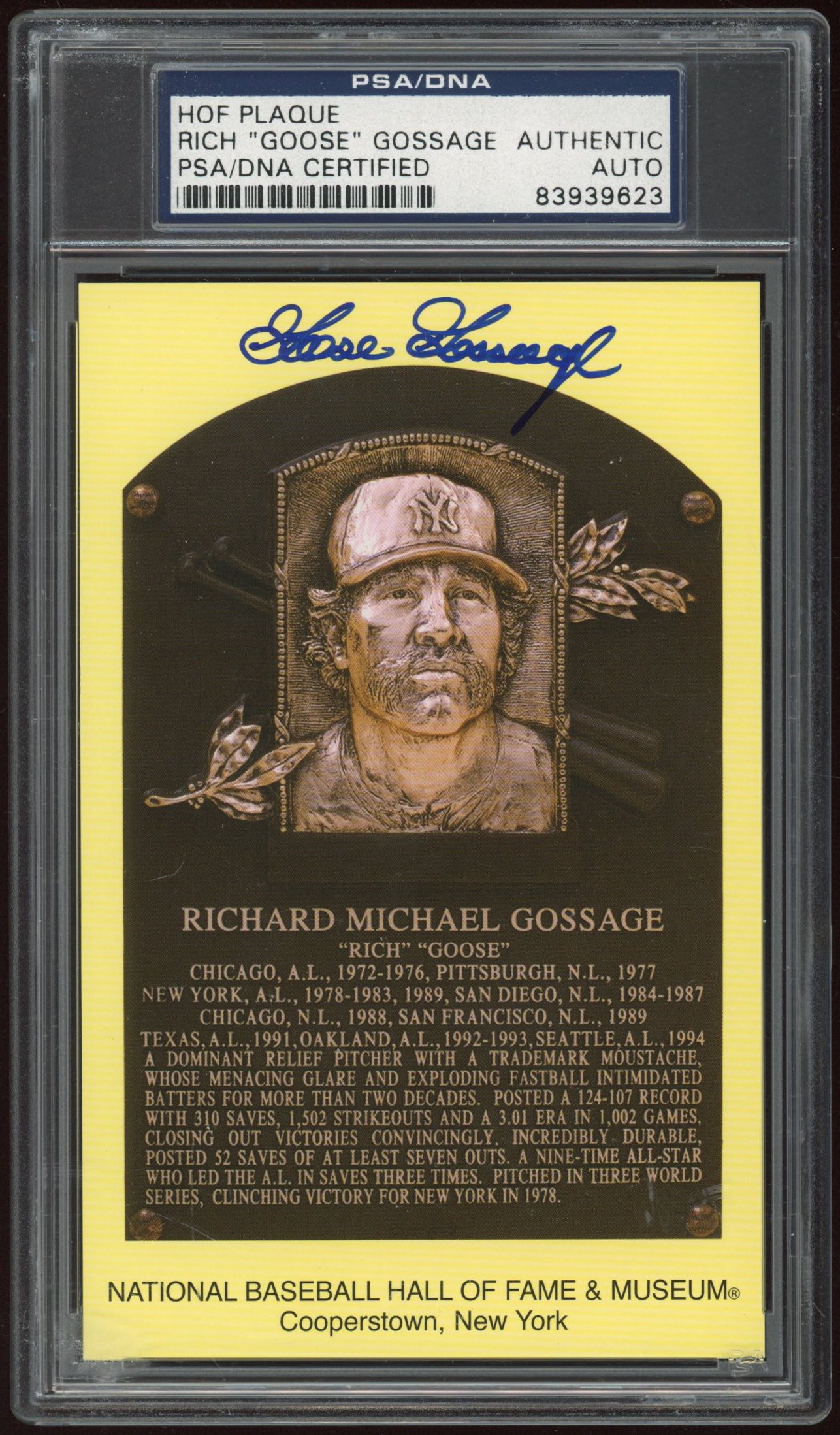 Goose Gossage Signed Hall of Fame Plaque Postcard (PSA Encapsulated)