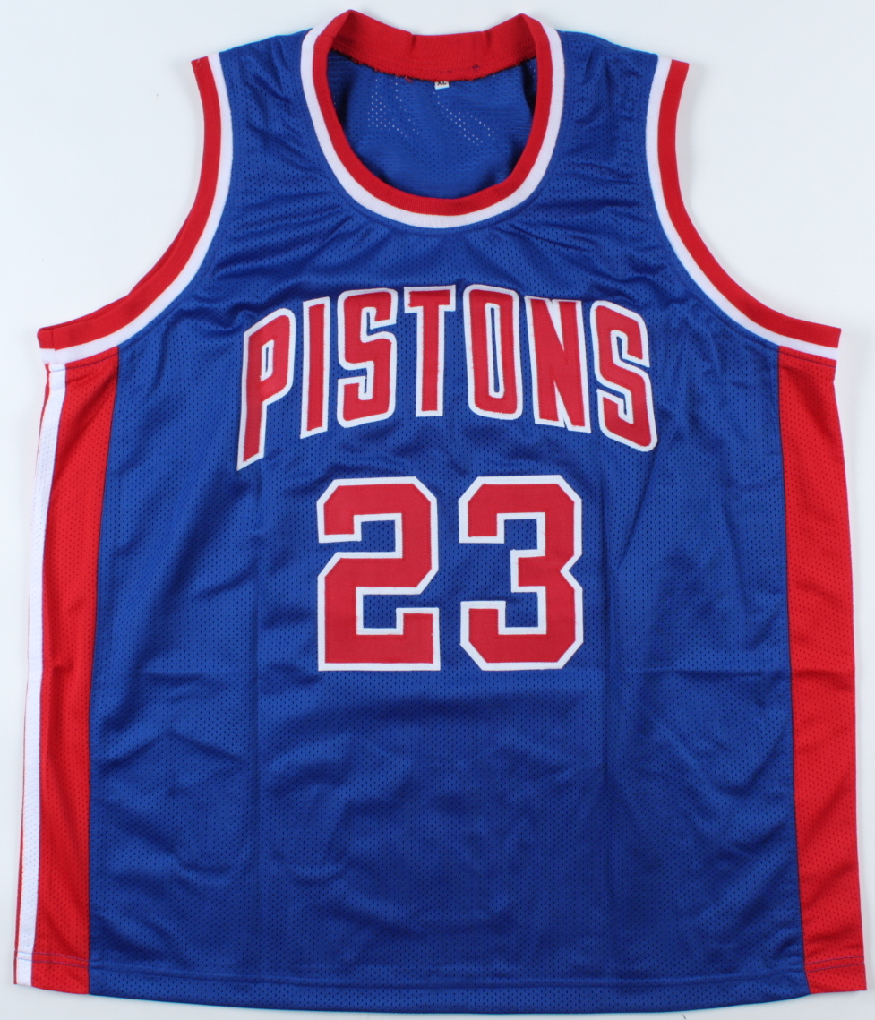 Custom on-court style jersey. Everything is sewn on, size XL. Has been hand-signed by Mark Aguirre.