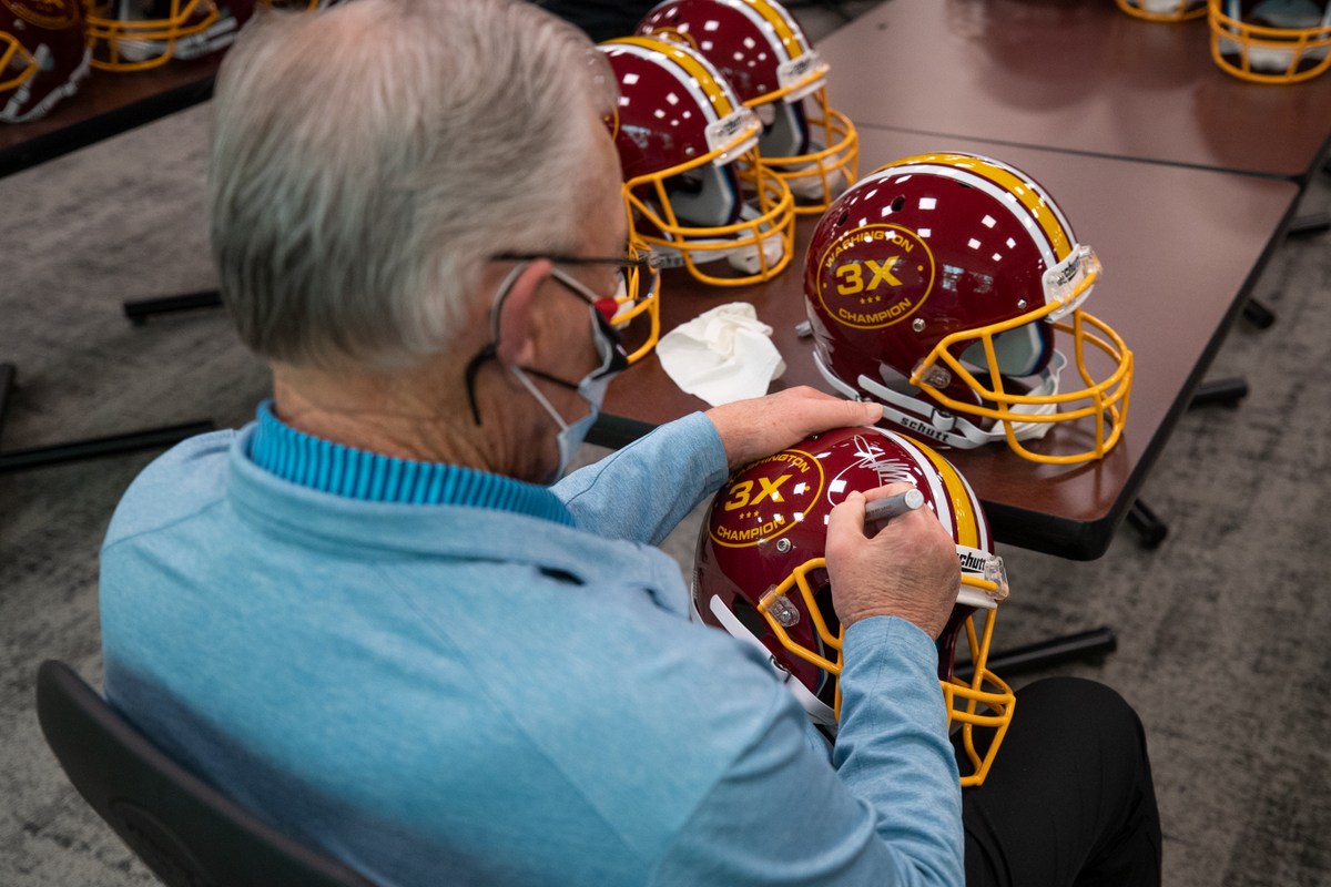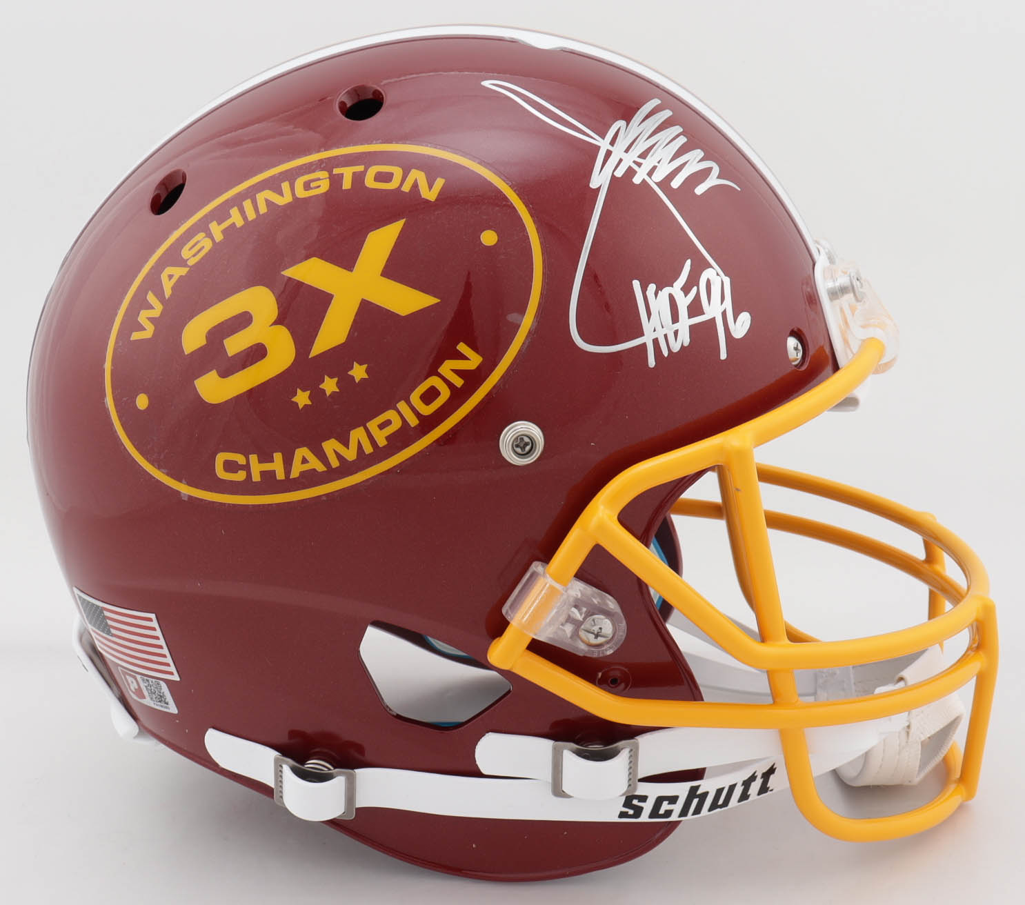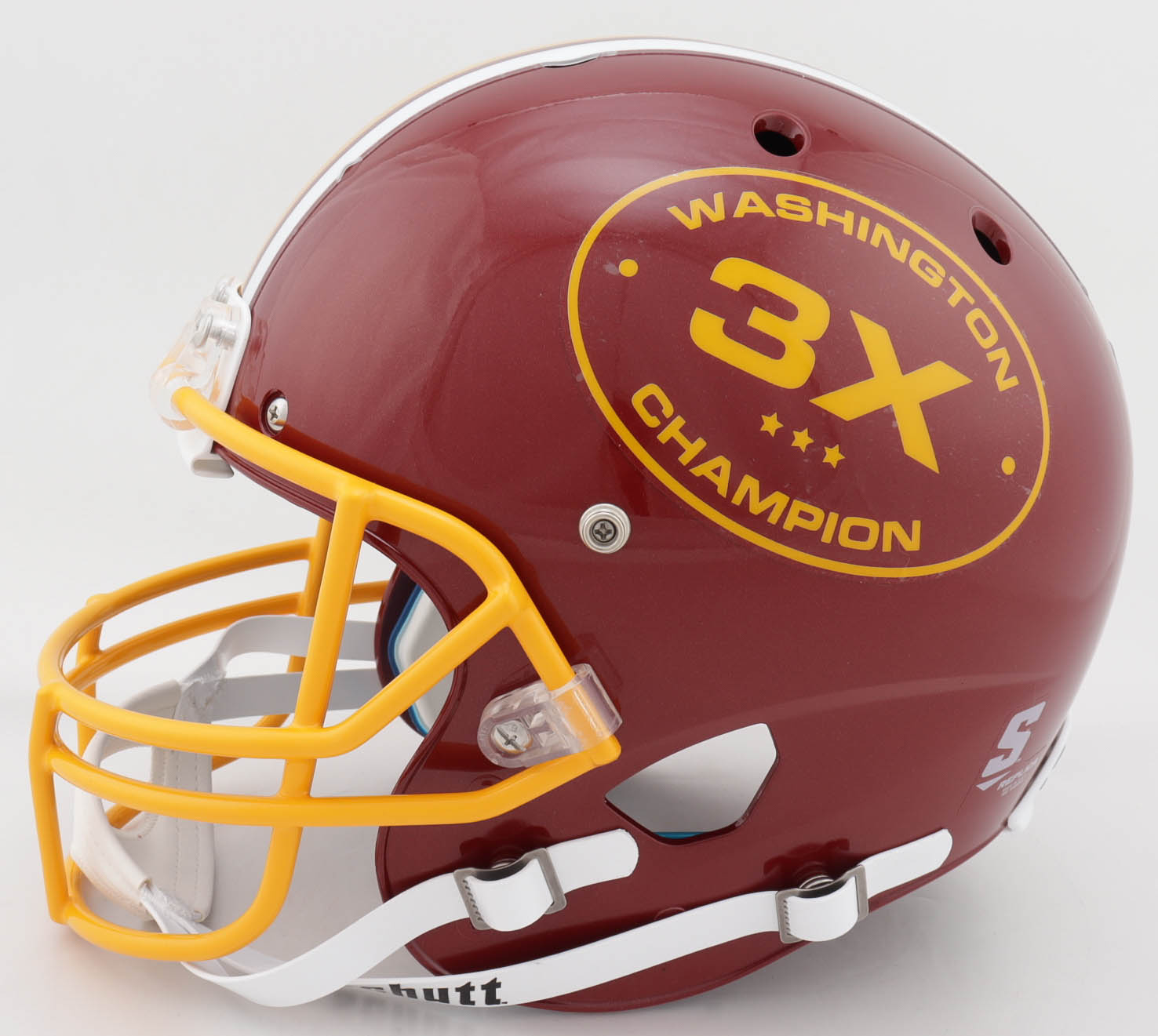 The helmet features an exclusive Joe Gibbs Washington 3X Champion logo to commemorative his 3 Super Bowl championships with the Washington Redskins.