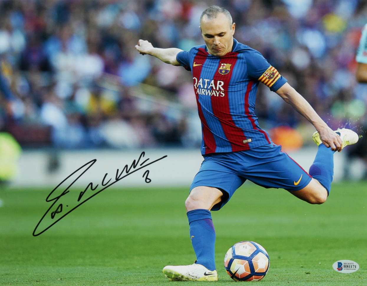 Photo measures 11" x 14" in size and has been hand-signed by Andres Iniesta. Please note, the autograph is imperfect.
