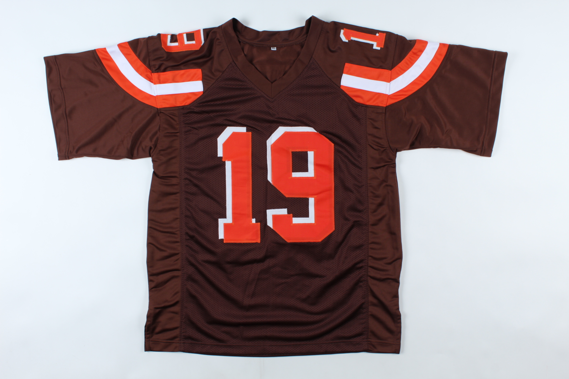 Custom on-field style jersey. Everything is sewn on, size XL. Has been hand-signed by Bernie Kosar.