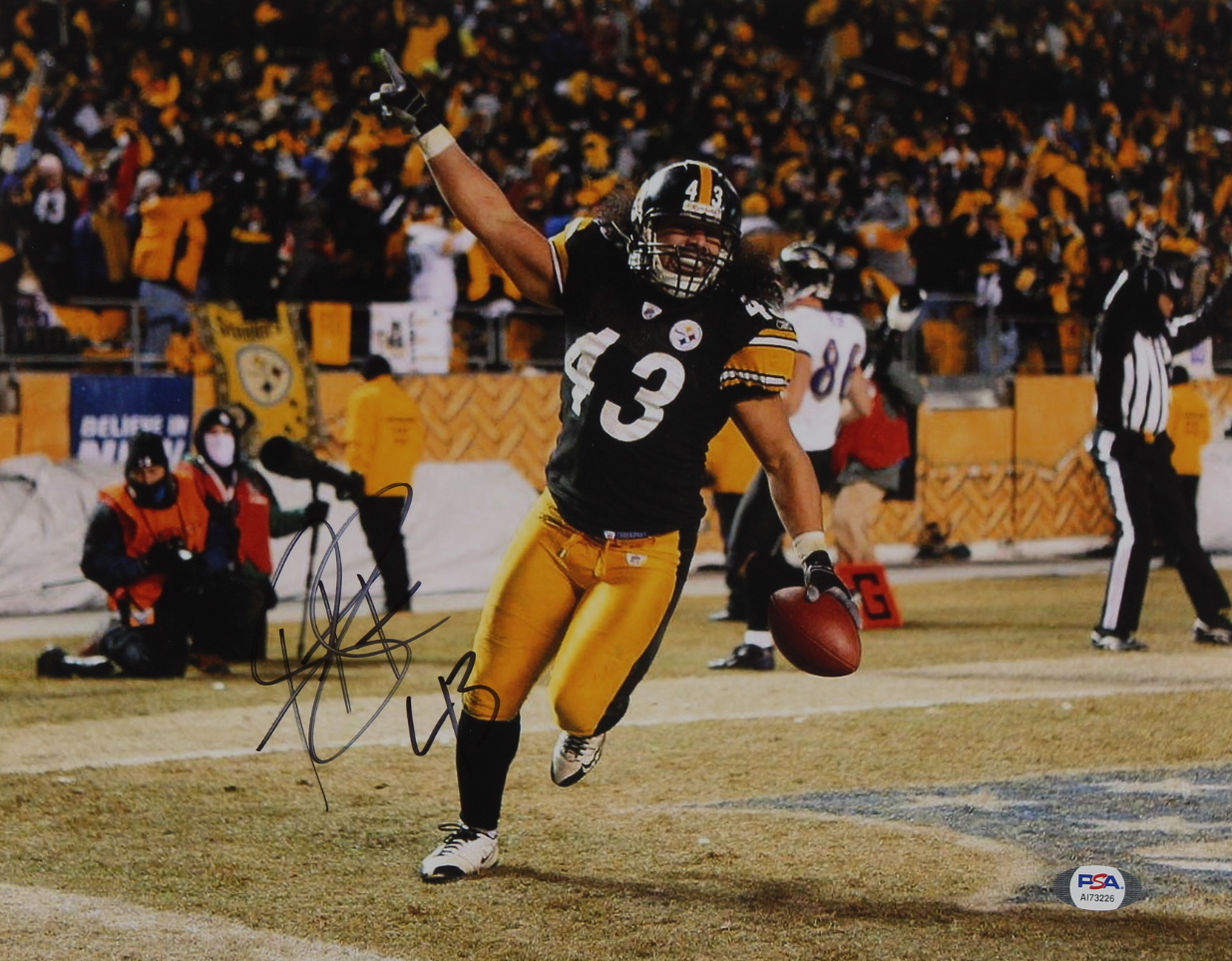 Photo measures 11" x 14" in size and has been hand-signed by Troy Polamalu (Pittsburgh Steelers).