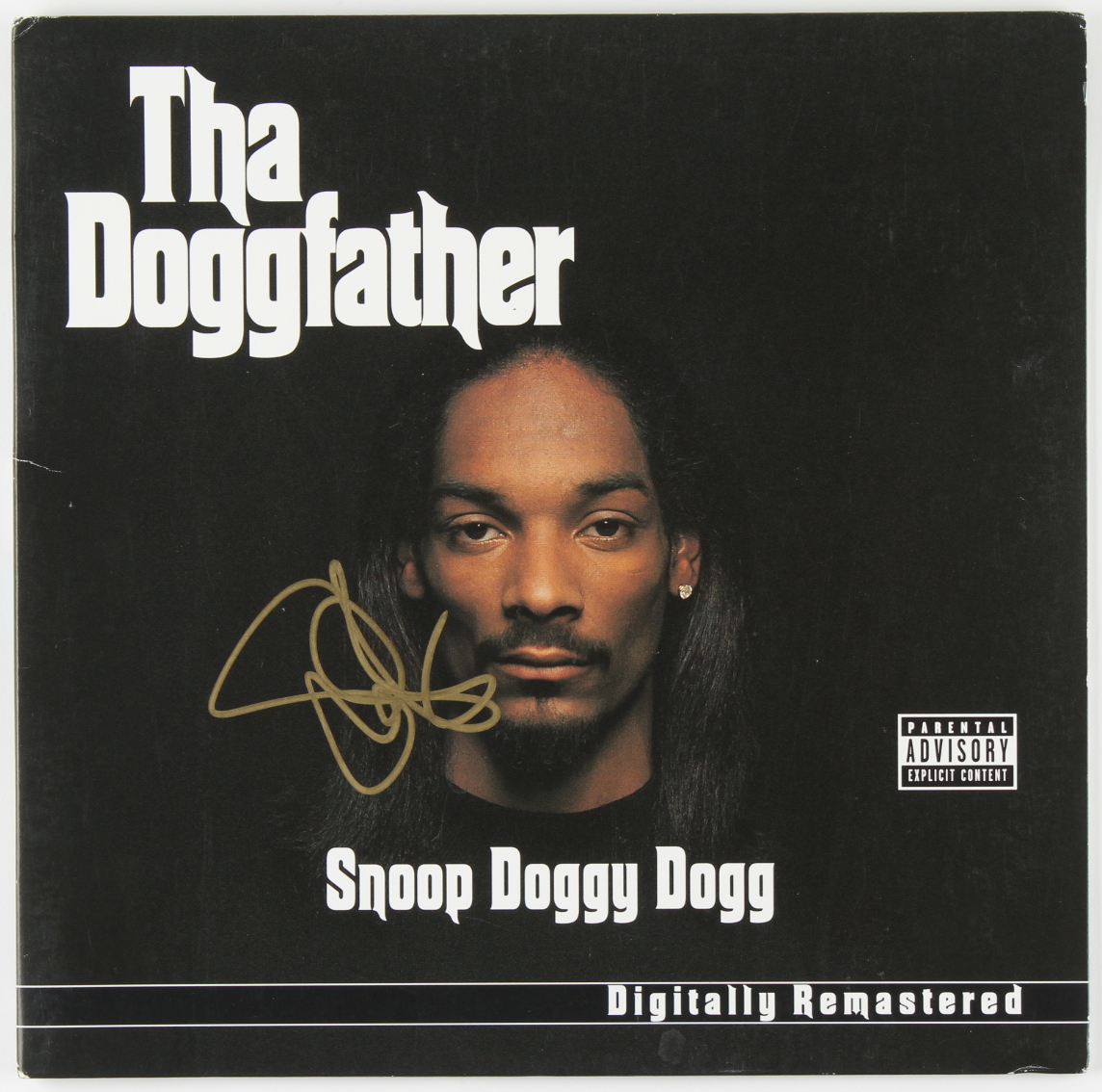 "The Doggfather" album cover has been hand-signed by Snoop Dogg. Please note, the record is not included. Also note, the spine shows slight wear.