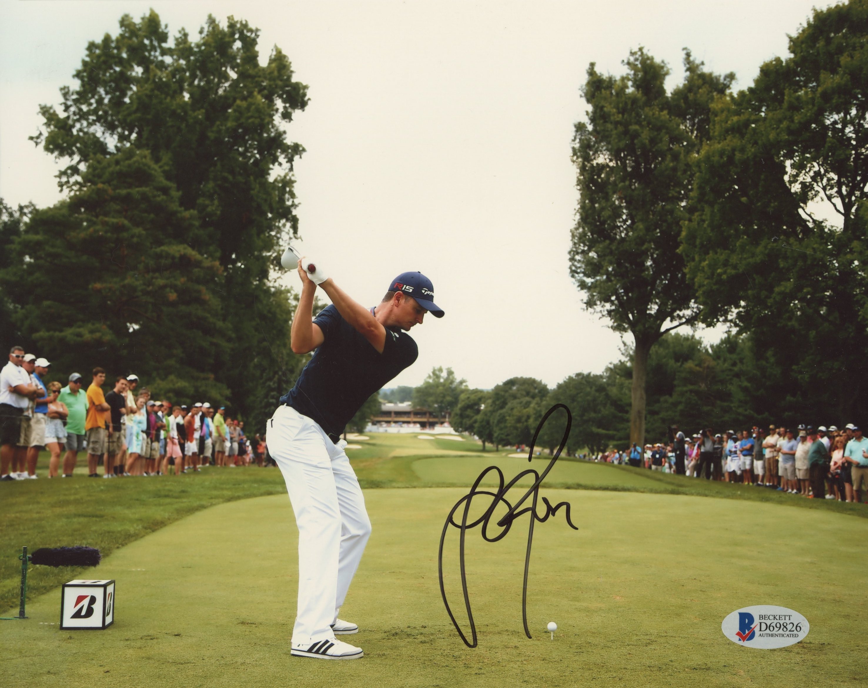 Photo measures 8" x 10" in size and has been hand-signed by Justin Rose.