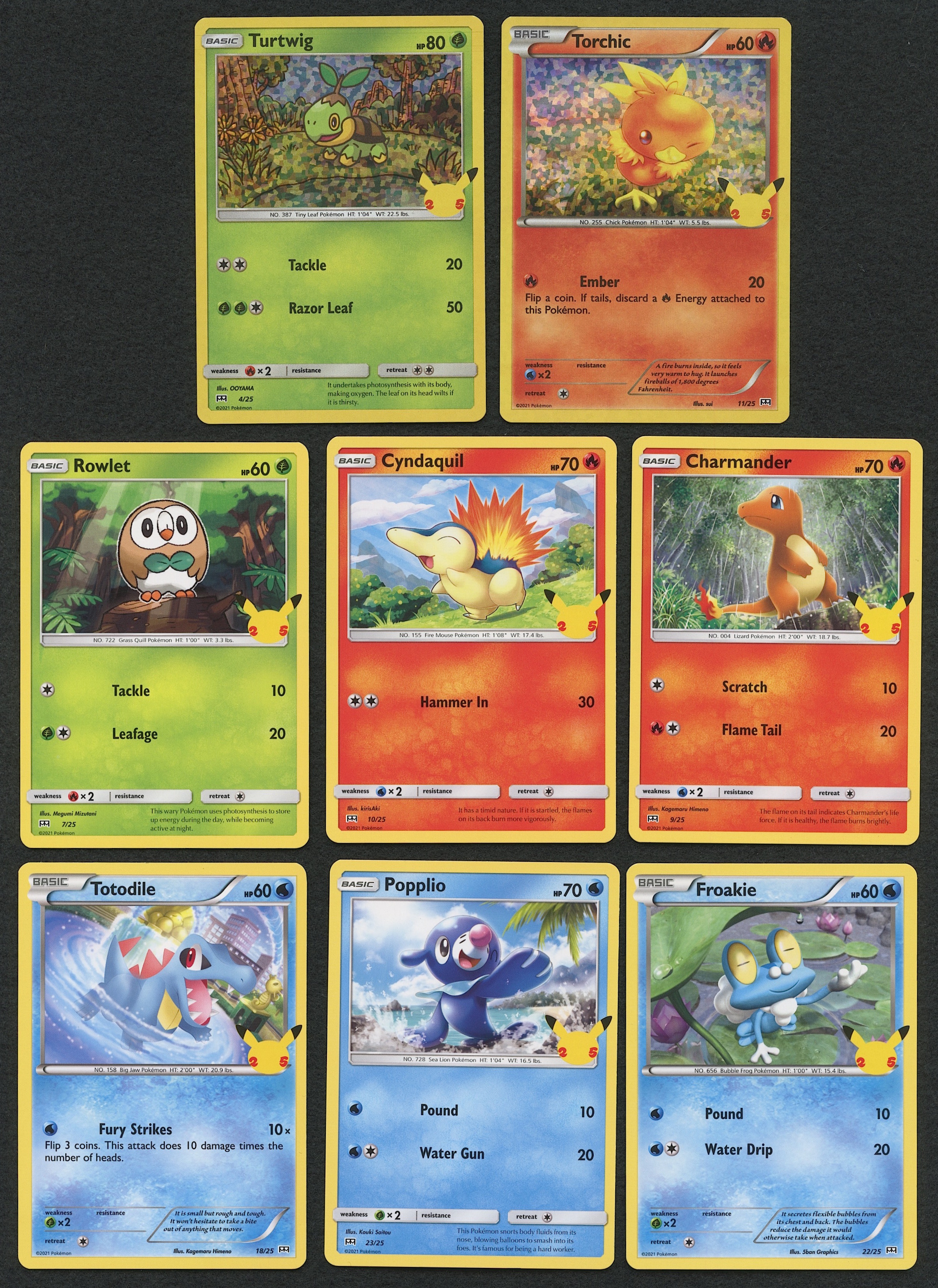 Lot of (8) 2021 Pokemon Cards Including (2) Holo with Turtwig & Torchic