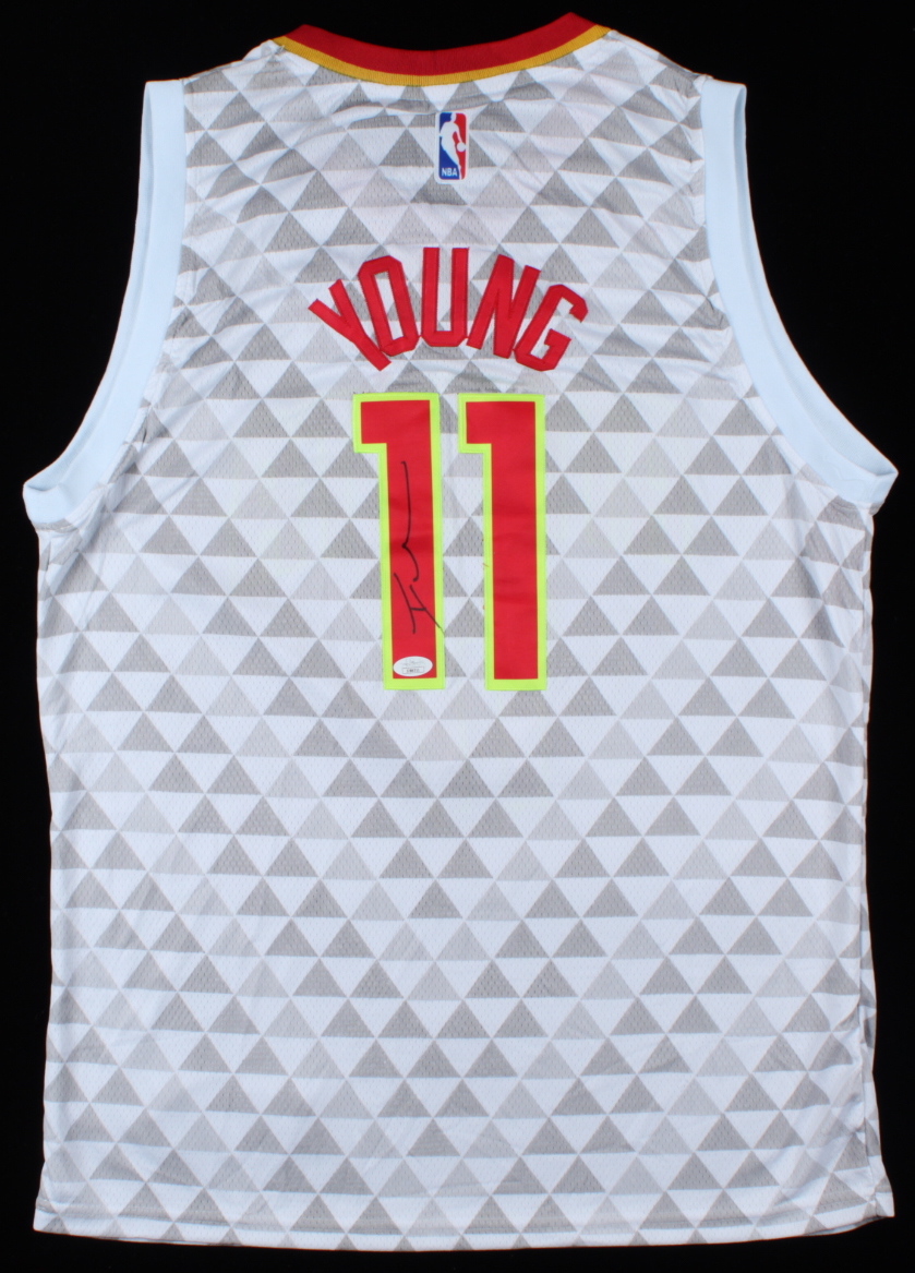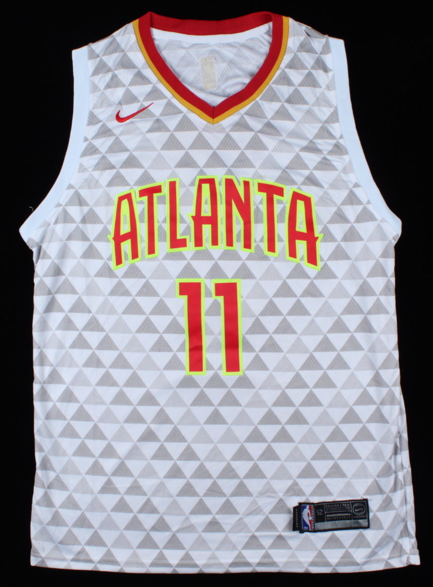 Nike on-court style jersey. Everything is sewn on, size 52. Has been hand-signed by Trae Young (Atlanta Hawks).