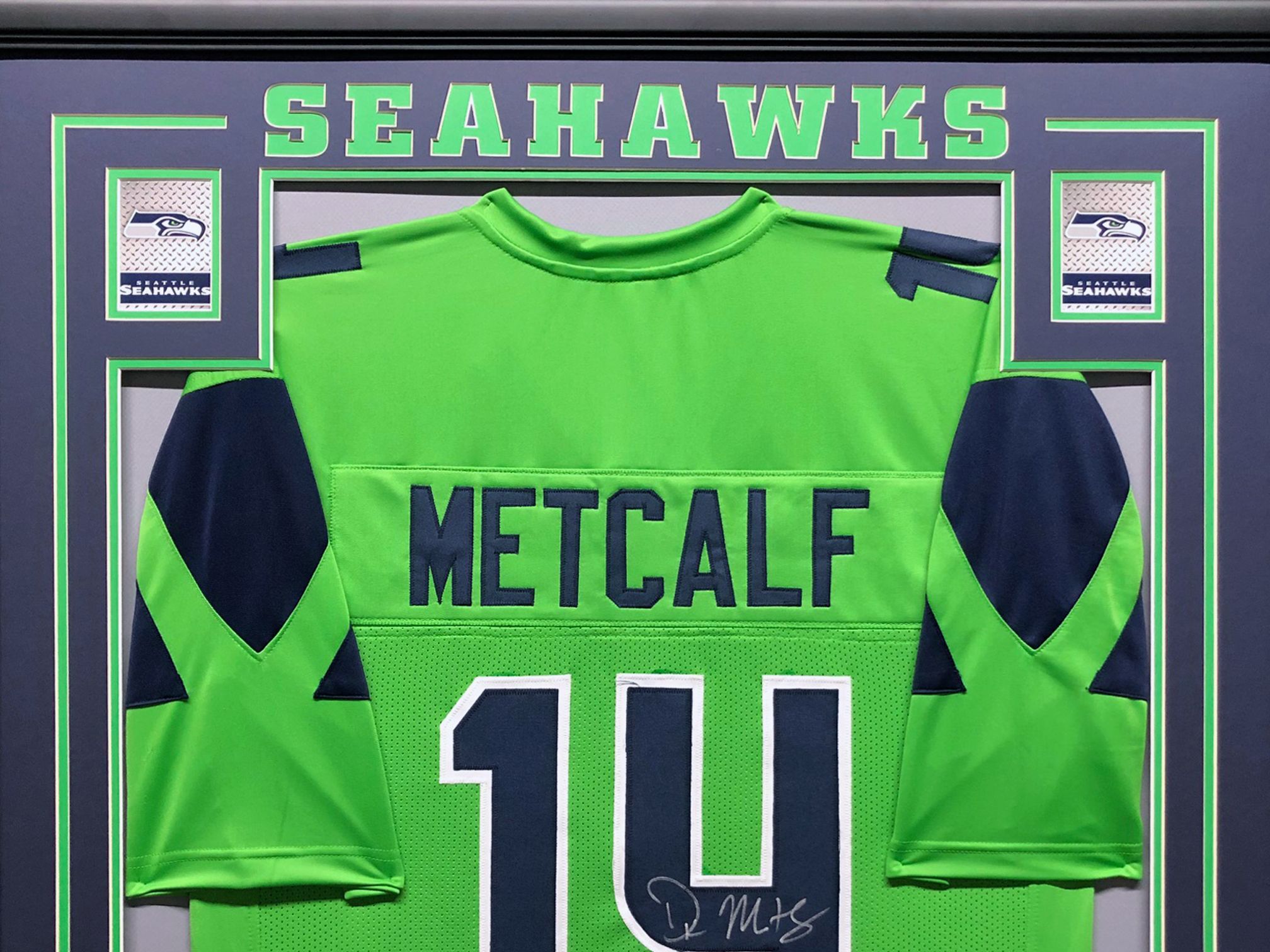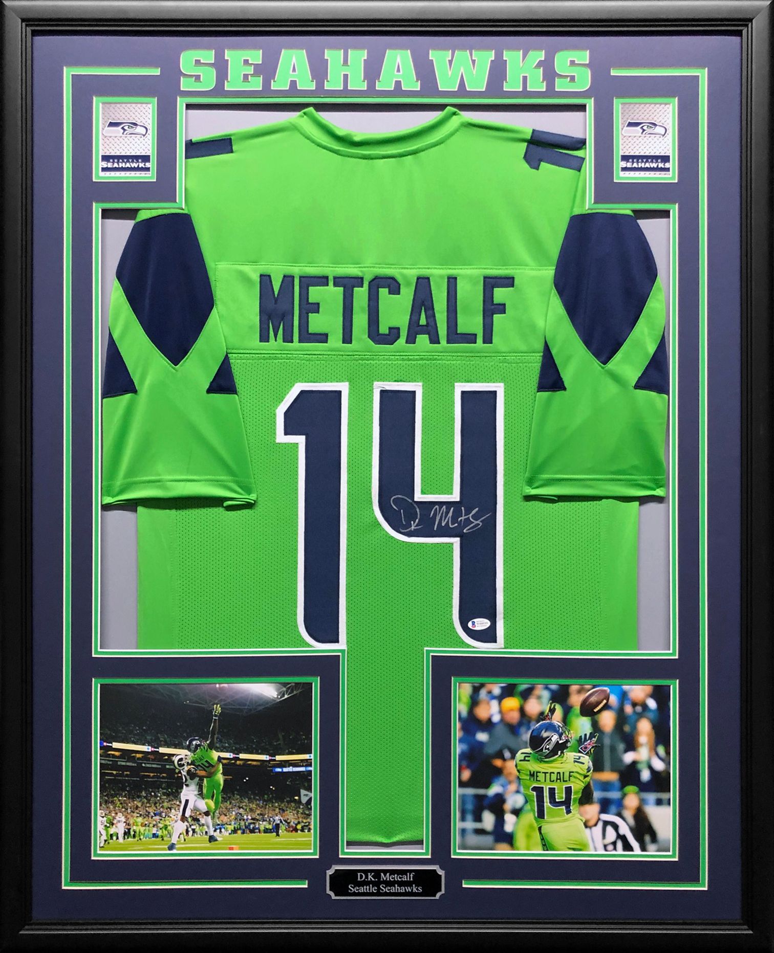 DK Metcalf Signed 34.5x42.5 Custom Framed Jersey (Beckett COA)