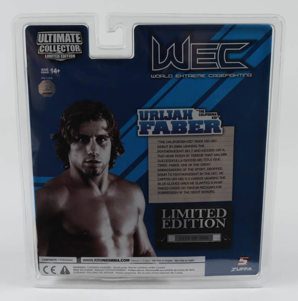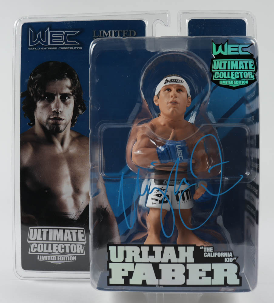 2011 WEC Figurine has been hand-signed by Urijah Faber. The figurine measures approximately 4" tall. Includes the original packaging as shown.Please note, item is limited edition #1,272/1,500.