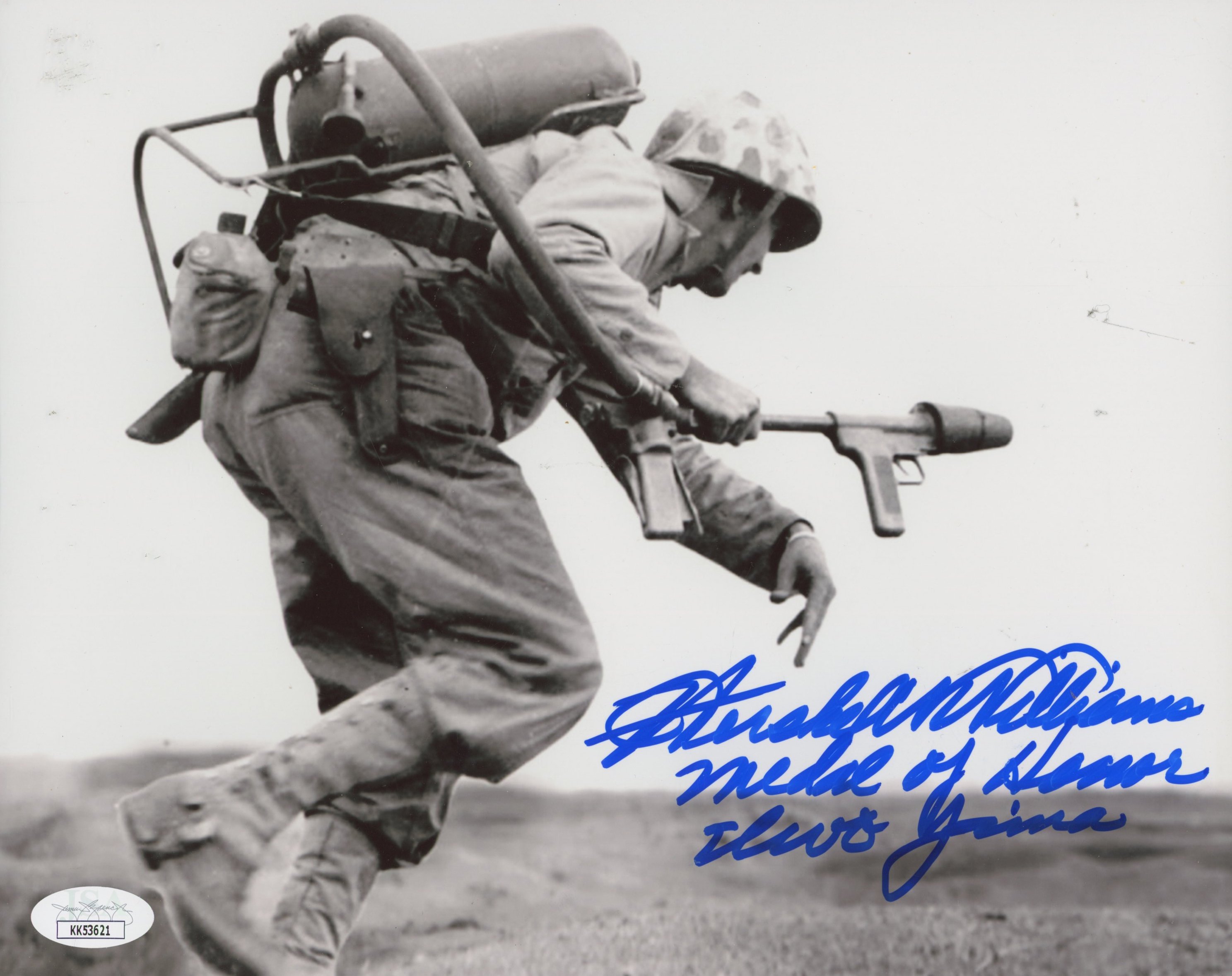 Photo measures 8" x 10" in size and has been hand-signed and inscribed by Hershel Williams.