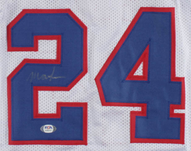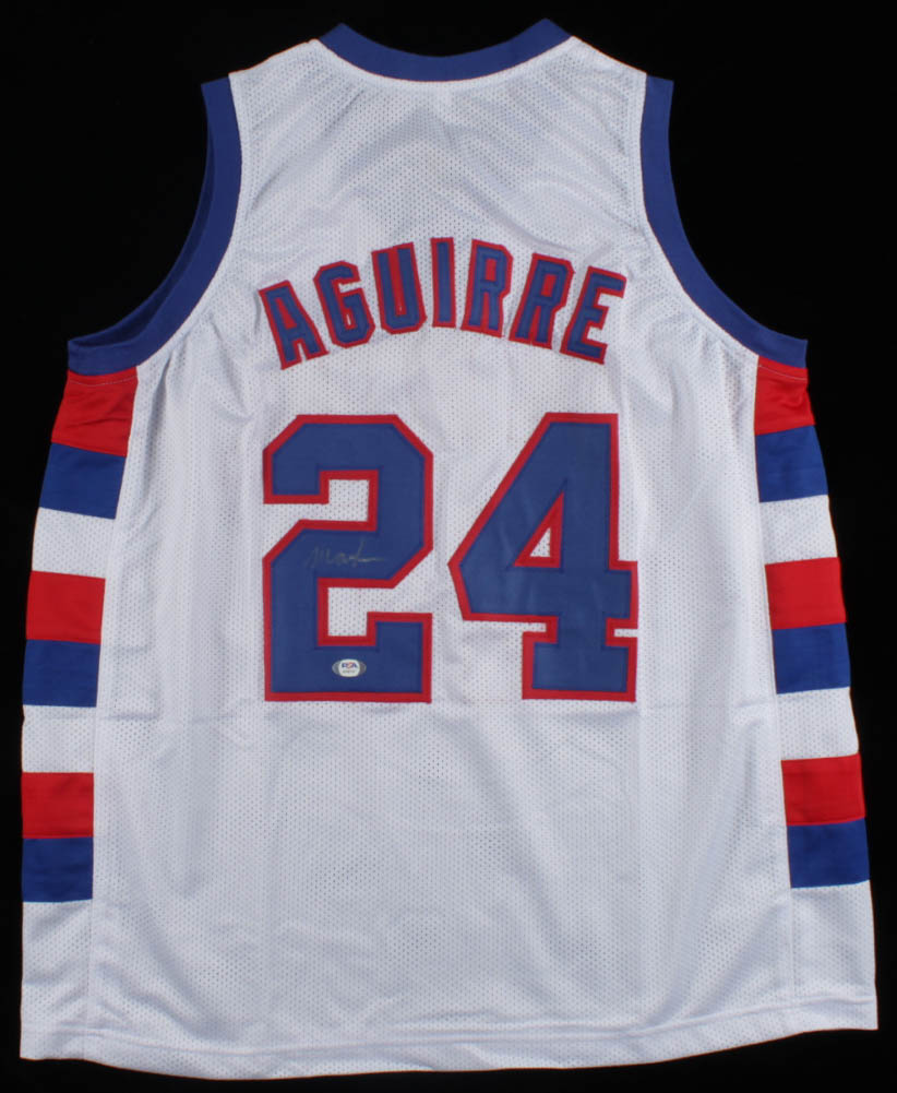 Custom on-court style jersey. Everything sewn on, size XL. Hand-signed by Mark Aguirre.