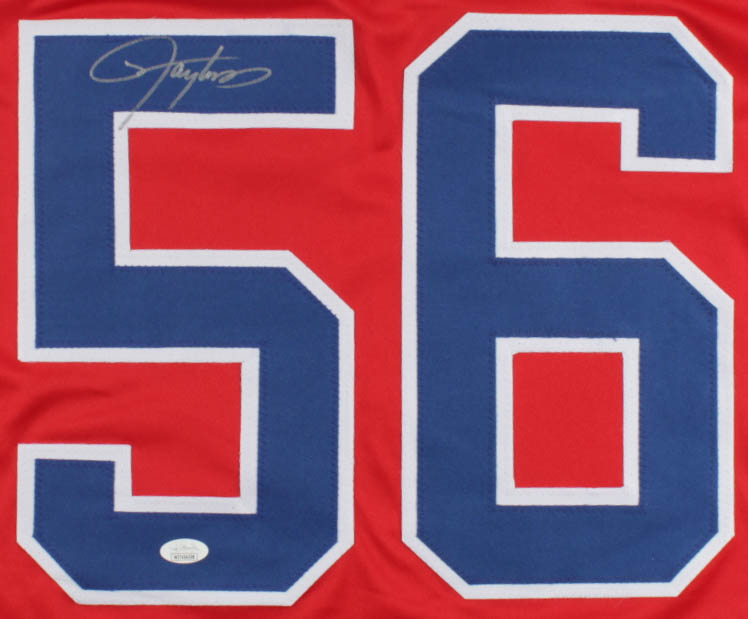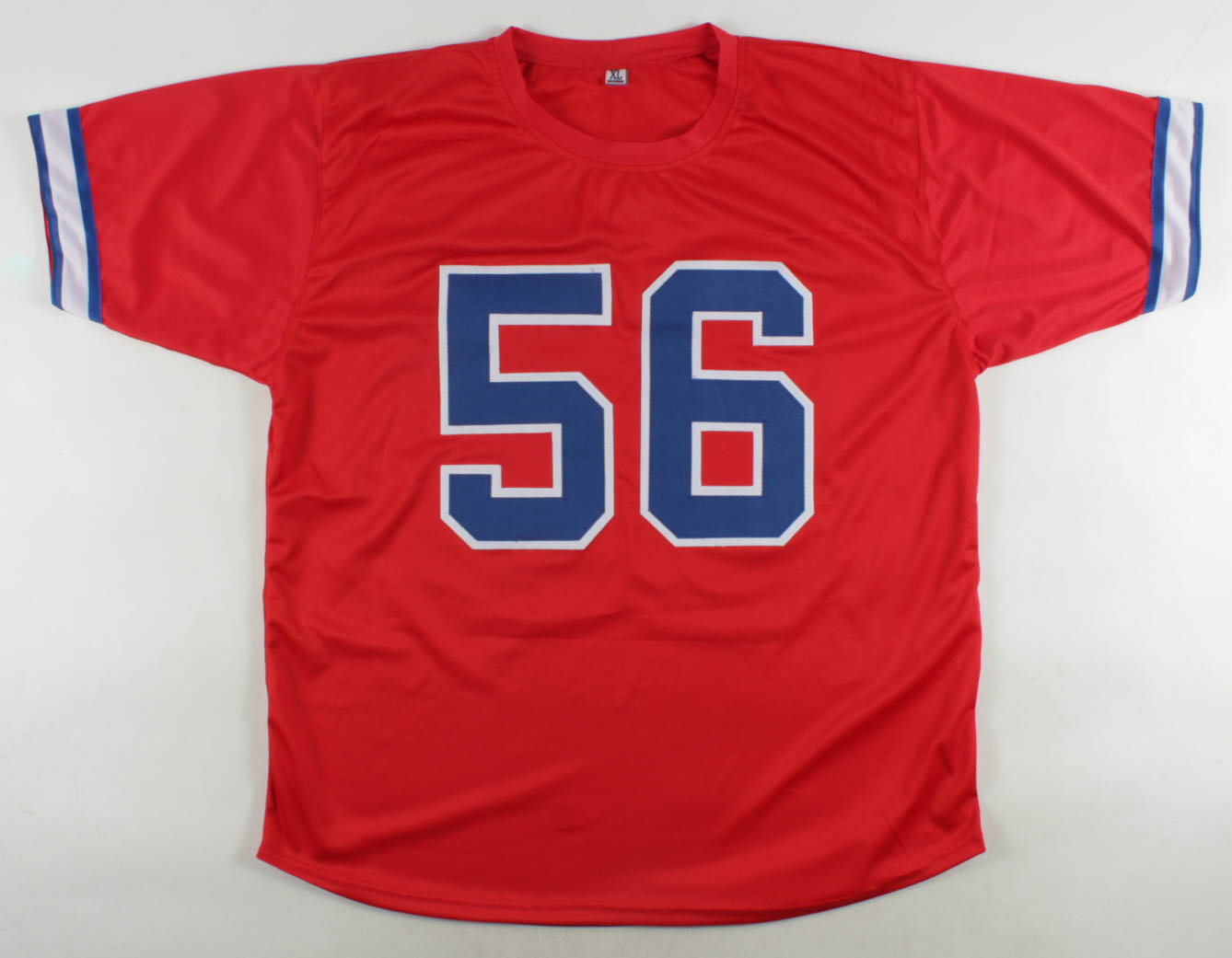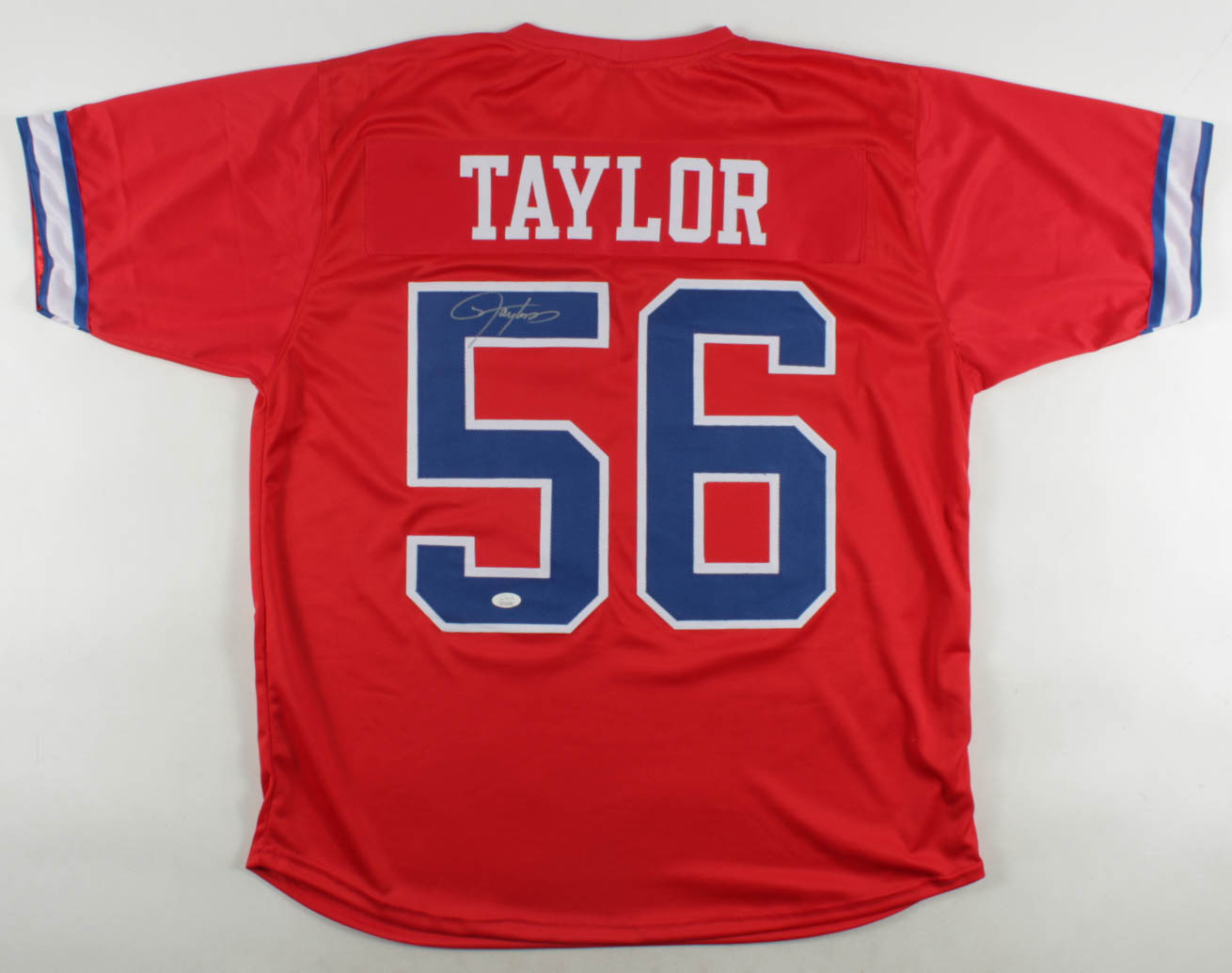 Custom on-field style jersey. Everything is sewn on, size XL. Hand-signed by Lawrence Taylor (HOF).