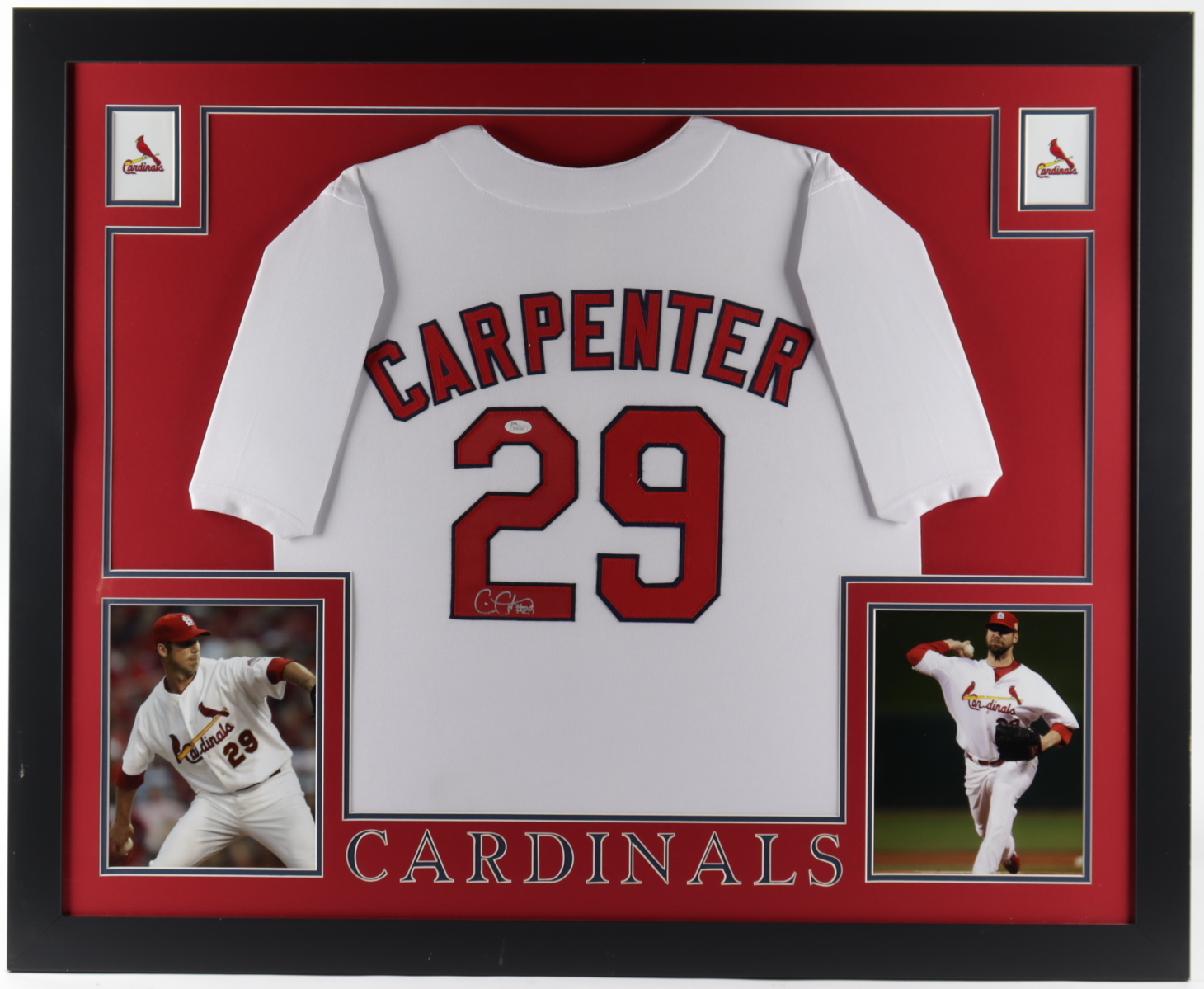 Chris Carpenter Signed Cardinals 35.5x43.5 Custom Framed Jersey (JSA COA) (See Description)