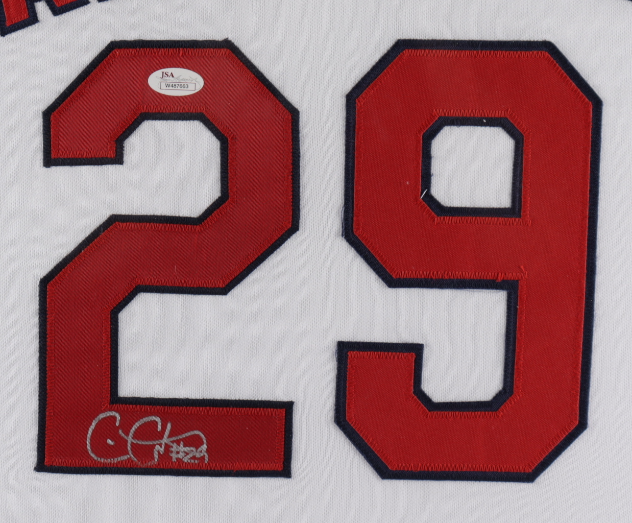 Custom frame measures approximately 35.5" x 43.5" in size and features a jersey which has been hand-signed by Chris Carpenter. Please note, frame shows signs of damage.