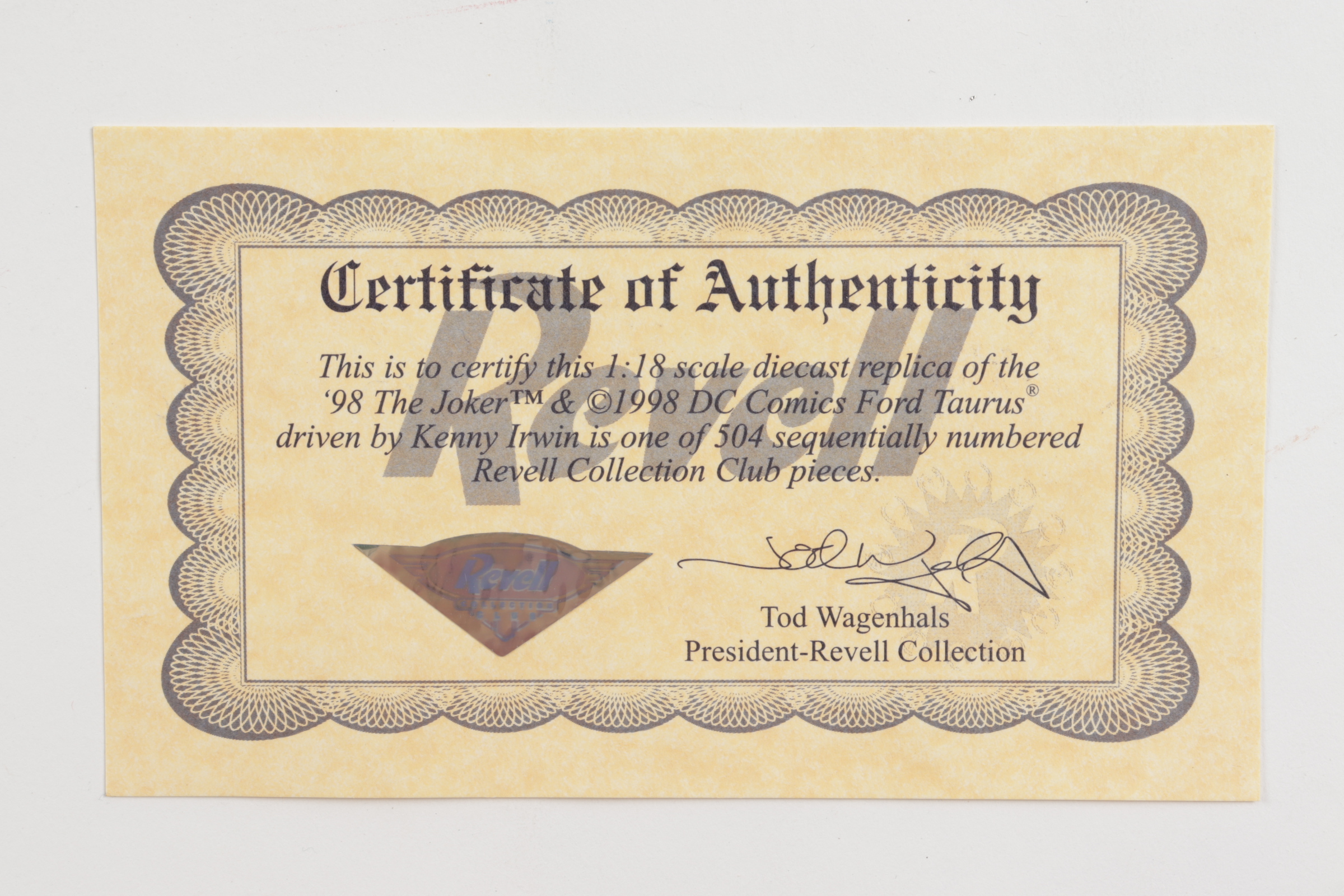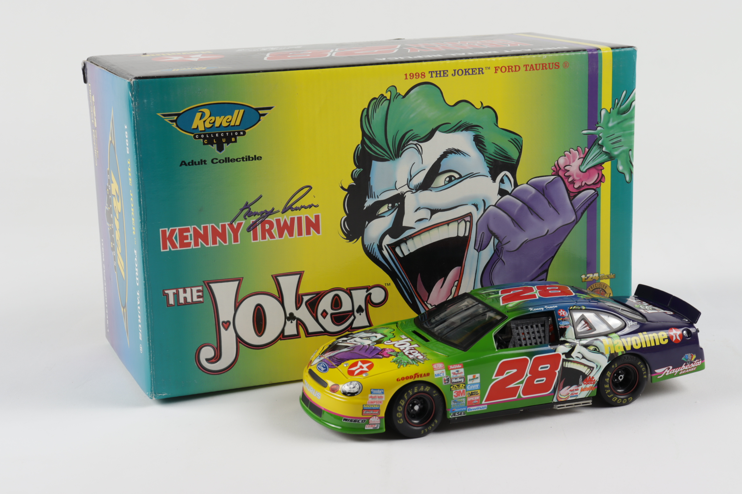 Kenny Irwin LE #28 Joker 1998 Ford Taurus 1:24 die cast car. The car is limited edition. Please note, the car is unsigned. See images for details regarding the condition of the packaging.