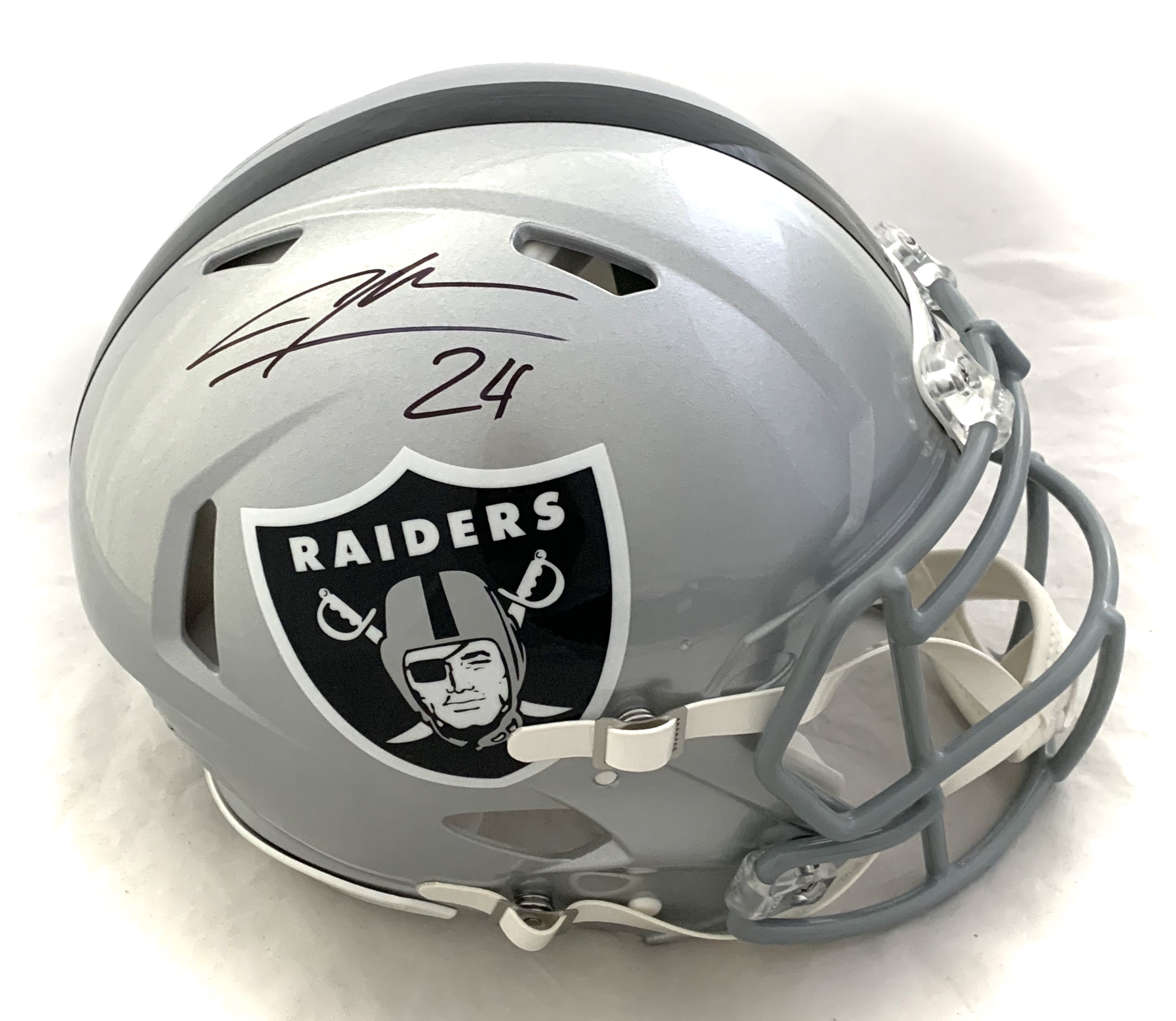 Riddell Oakland Raiders full-size authentic on-field speed helmet. Hand-signed by Charles Woodson (HOF).