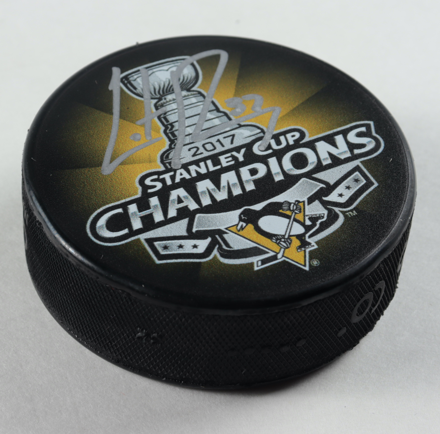 2017 Stanley Cup Logo Hockey Puck logo hockey puck. Hand signed by Carter Rowney (Pittsburgh Penguins).