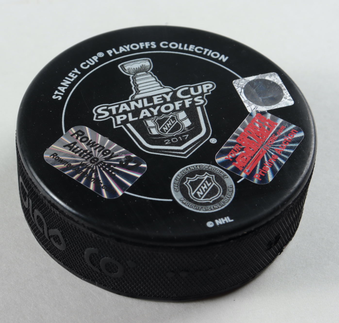Carter Rowney Signed 2017 Stanley Cup Logo Hockey Puck (Rowney COA)