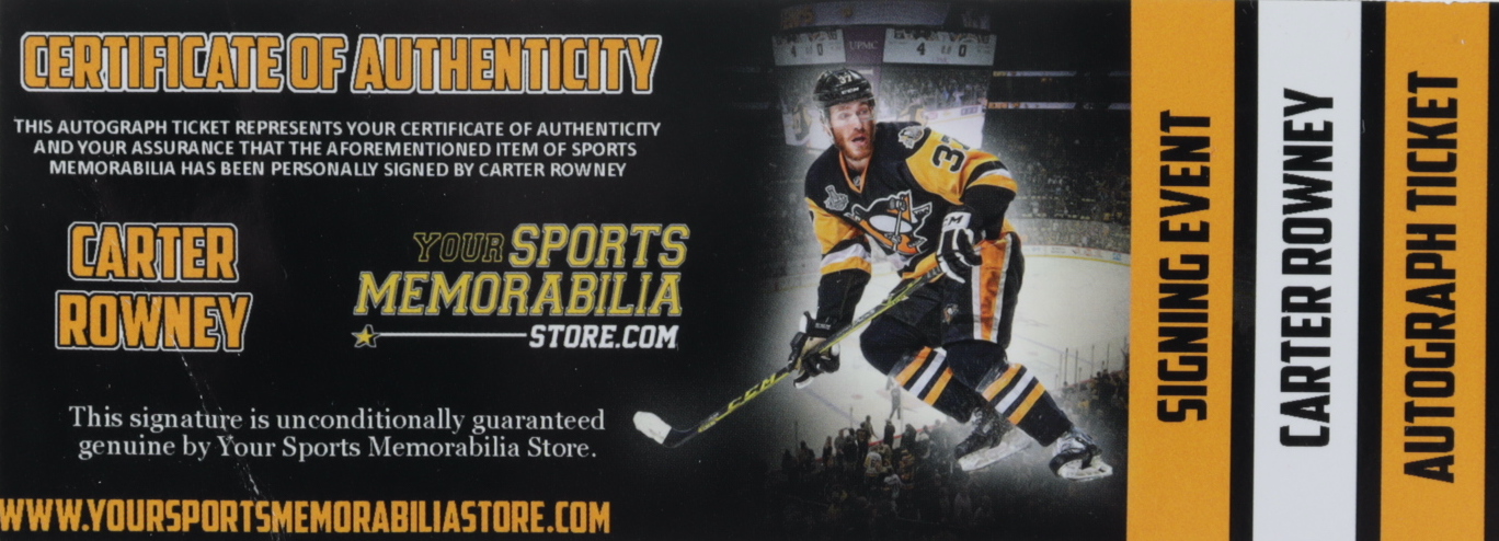 The lot / autograph(s) includes an official Your Sports Memorabilia Store Carter Rowney hologram and COA for authenticity purposes.