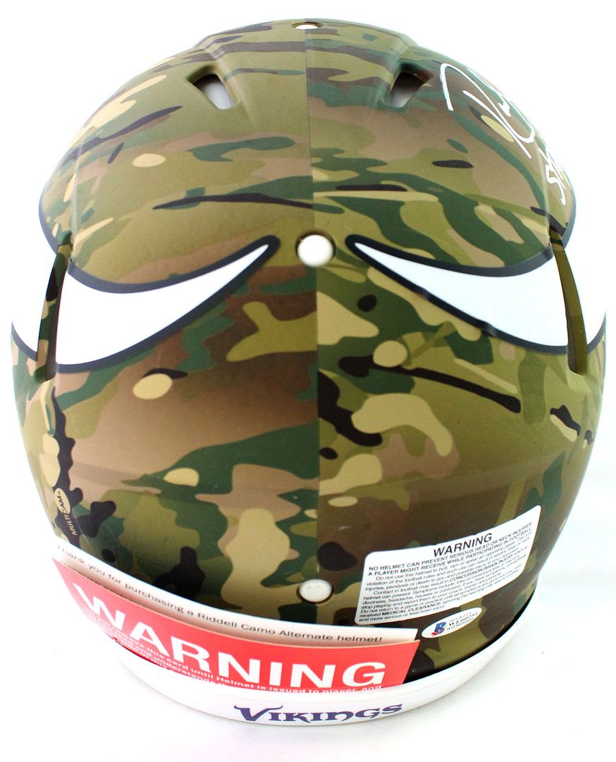 Riddell Minnesota Vikings full-size authentic on-field camo alternate speed helmet. Hand-signed by Randy Moss (HOF).