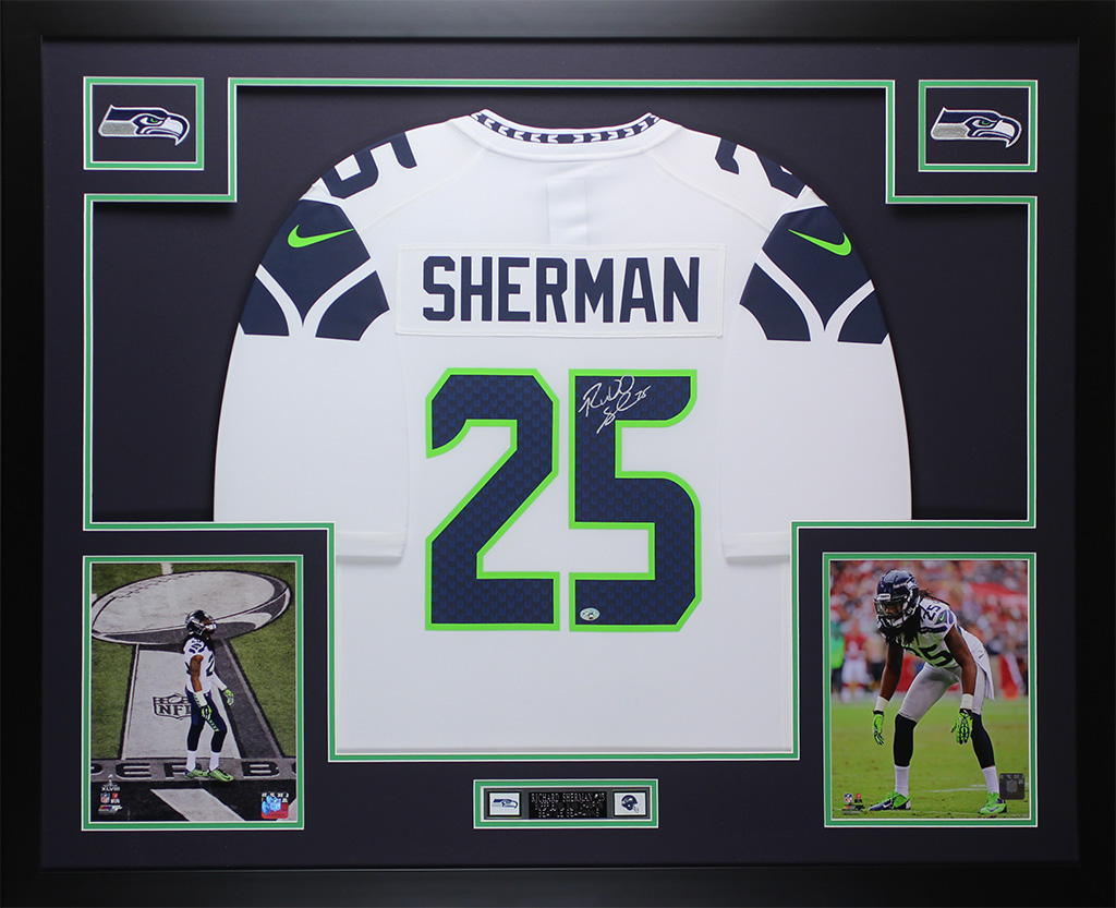 Richard Sherman Signed 35x43 Custom Framed Jersey (Sherman COA)