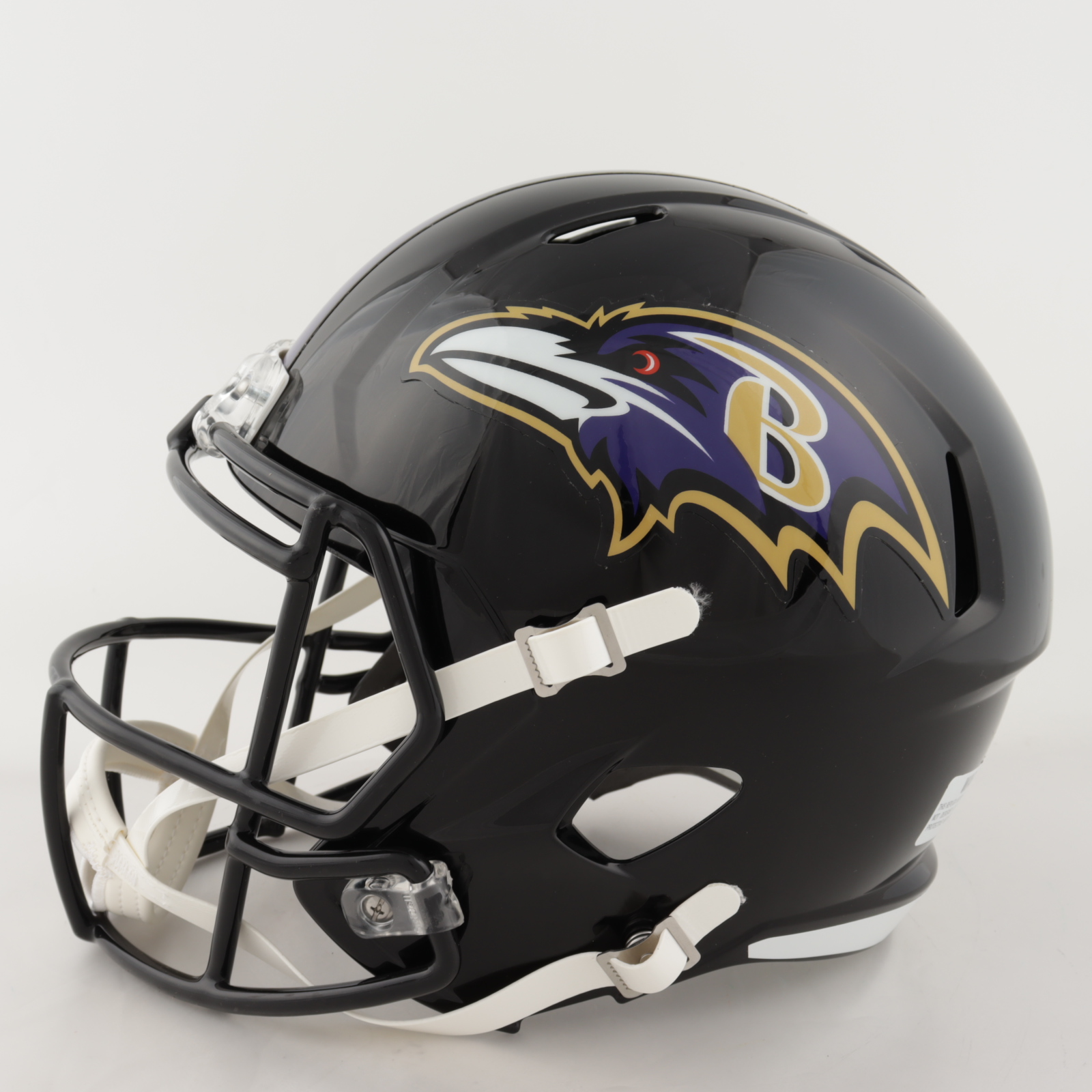 Riddell Baltimore Ravens full-size replica speed helmet. Hand-signed by J.K. Dobbins.