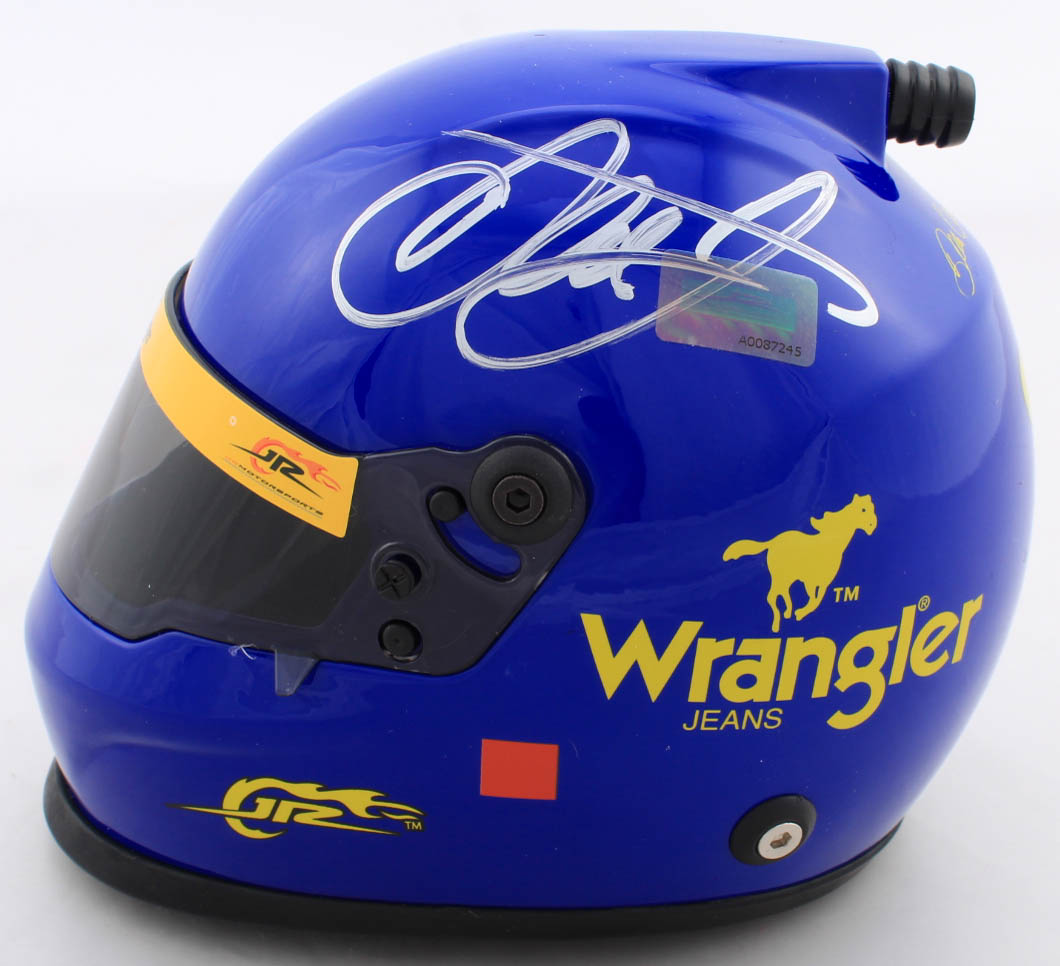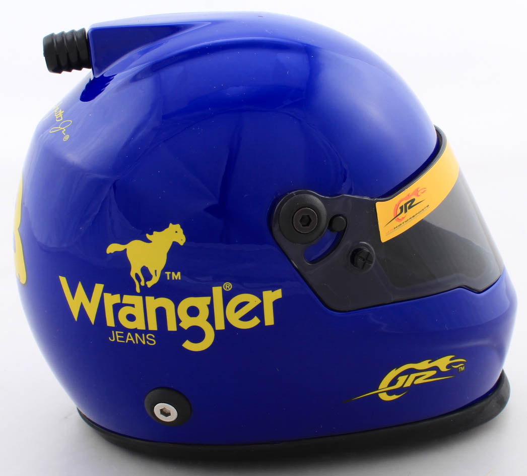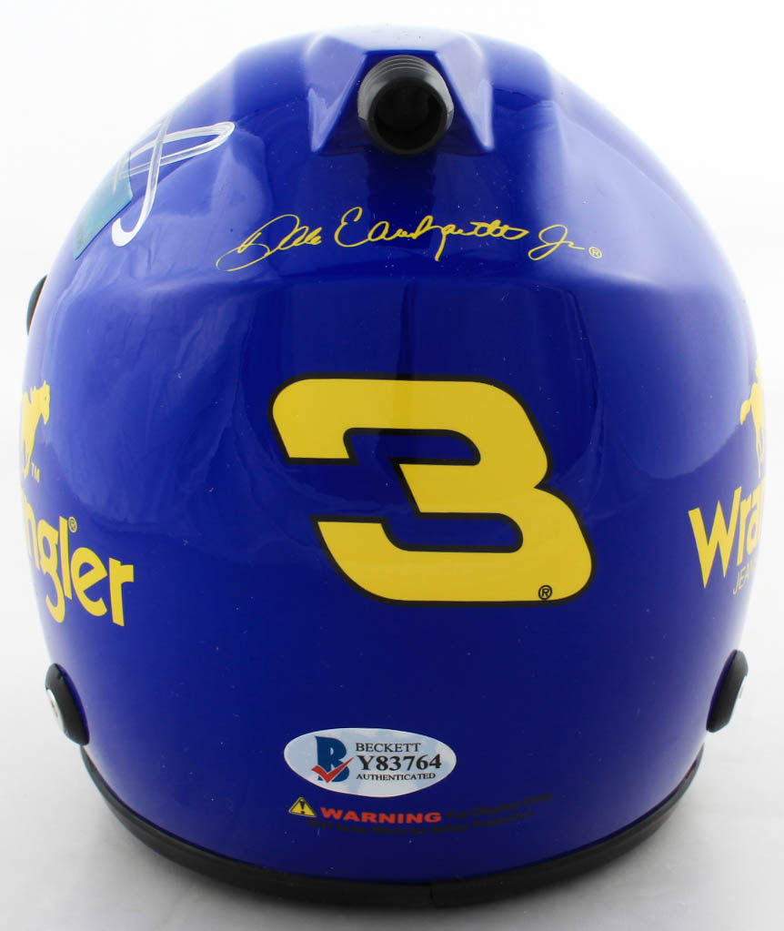 Wrangler #3 NASCAR mini helmet has been hand-signed by Dale Earnhardt Jr. (HOF)