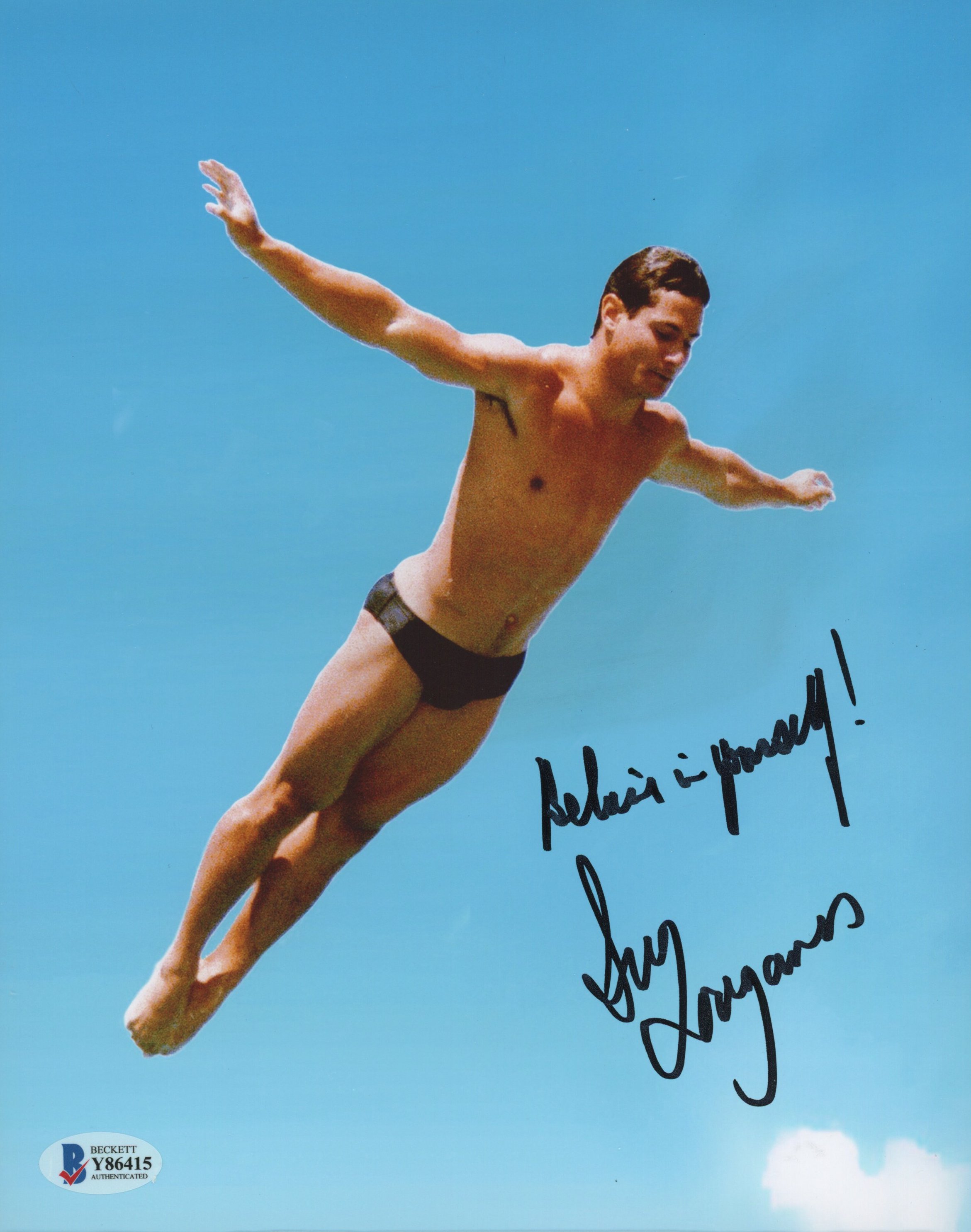 Photo measures 8" x 10" in size and has been hand-signed and inscribed by Greg Louganis (Team USA).