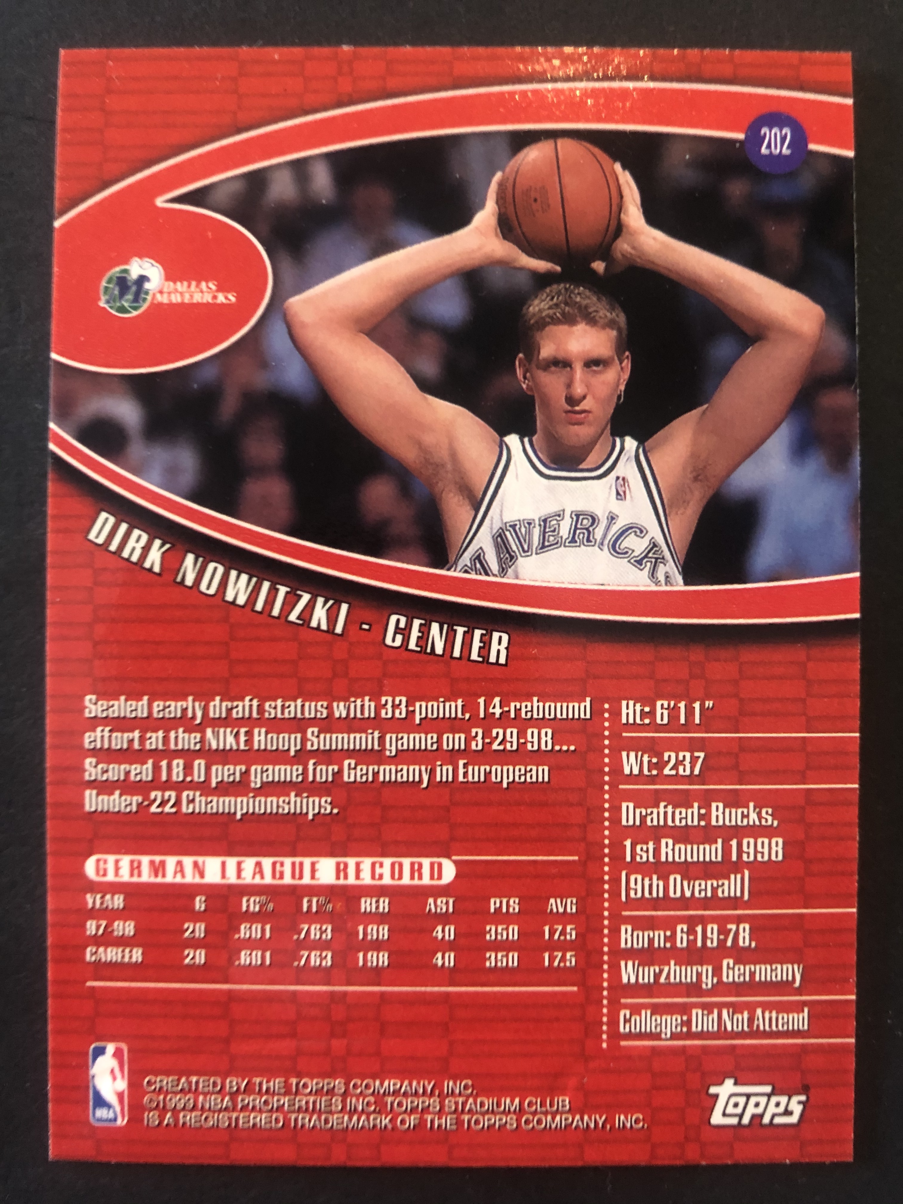 Dirk Nowitzki 1998-99 Stadium Club #202