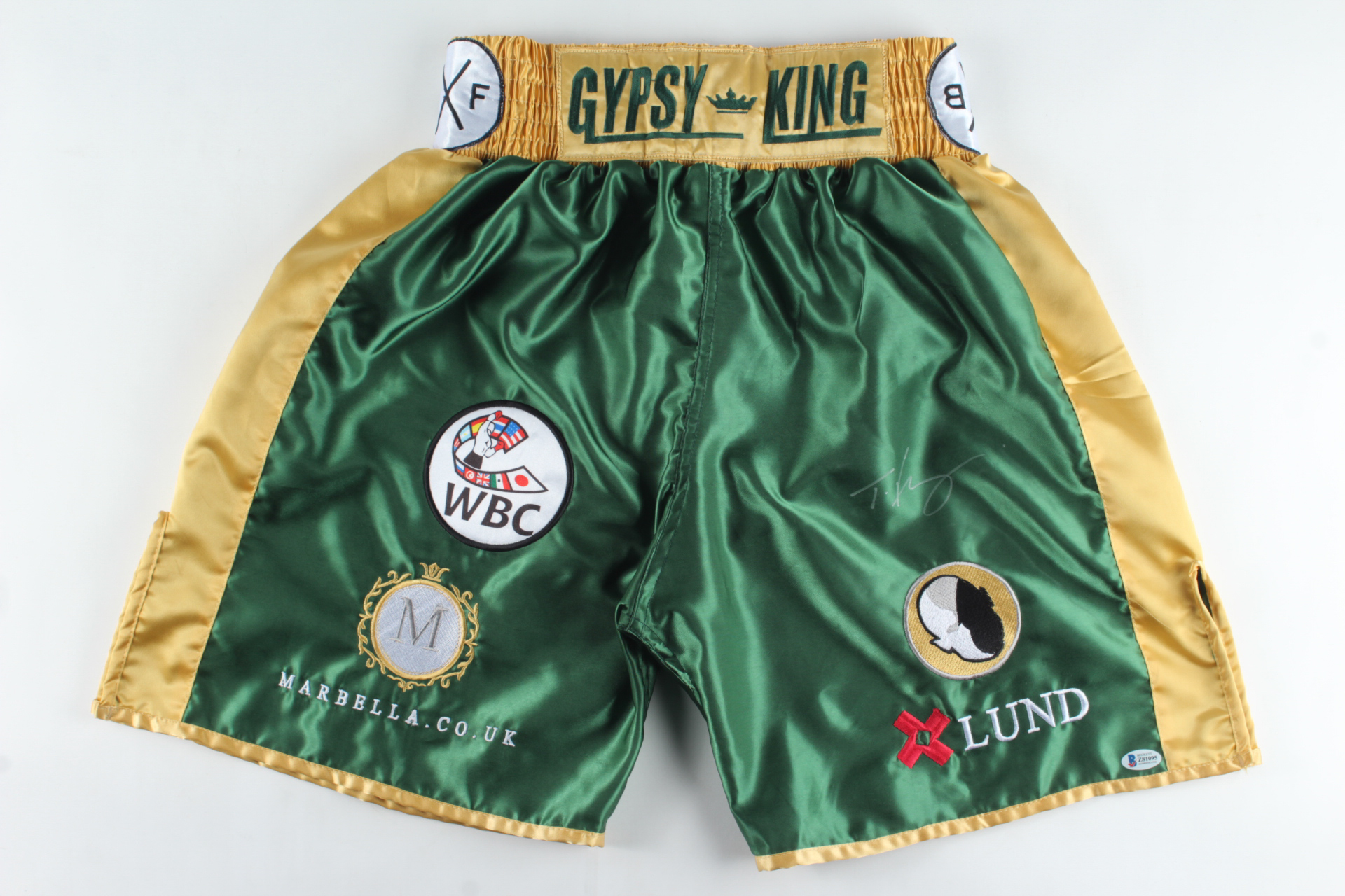 Custom boxing shorts have been hand-signed by Tyson Fury.