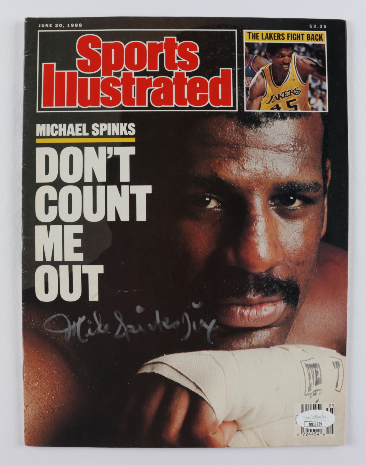 June 20, 1988 issue of Sports Illustrated Magazine has been hand-signed by Michael Spinks (HOF). Please note, the spine of the magazine is creased.