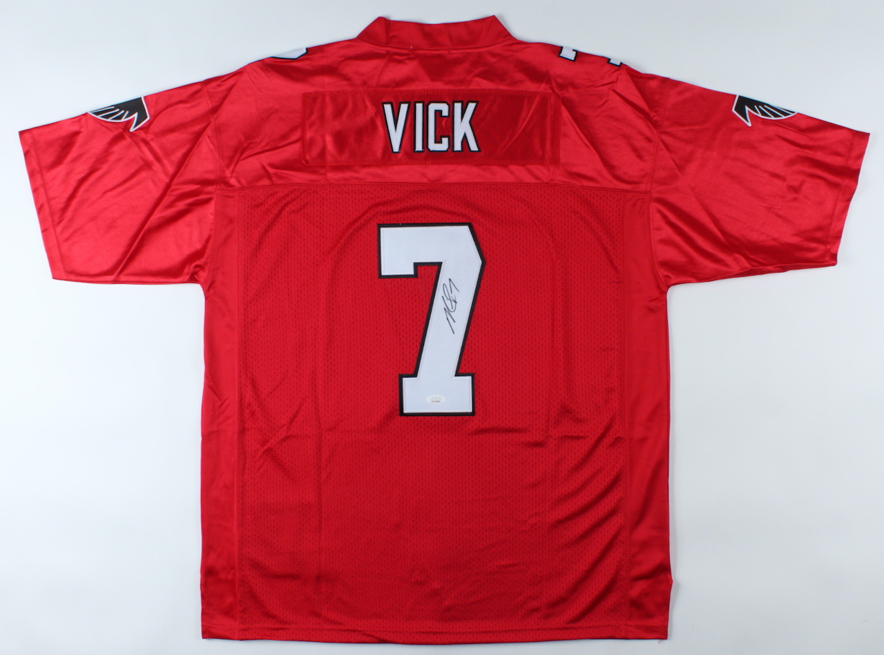 Mitchell & Ness on-field style jersey. Everything is sewn on, size XL. Hand-signed by Michael Vick