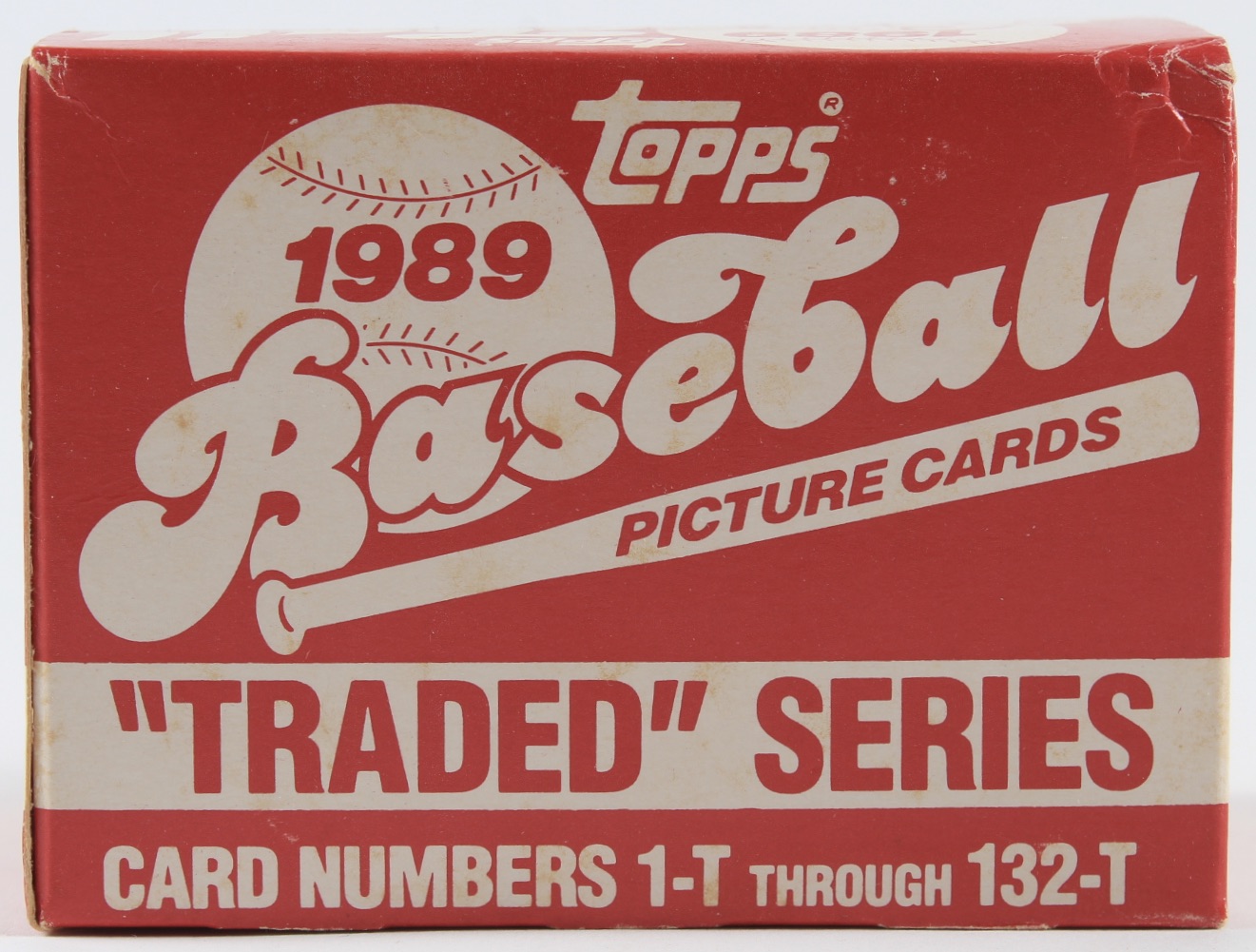 The 1989 Topps baseball "traded" series box is here! Contains 132 picture cards. Please note, the card box shows signs of wear. Cards are numbered from 1-T through 132-T.