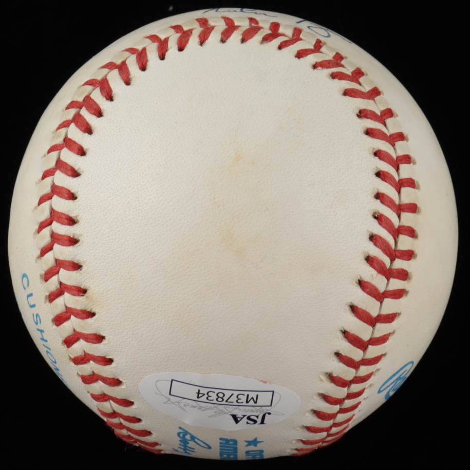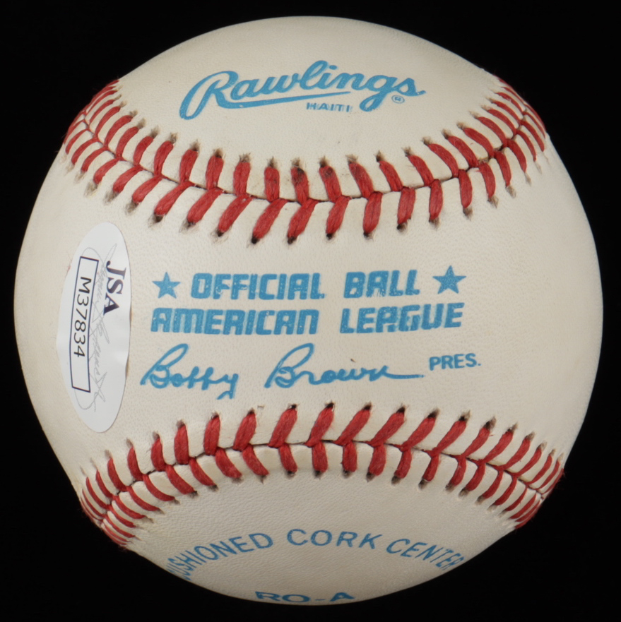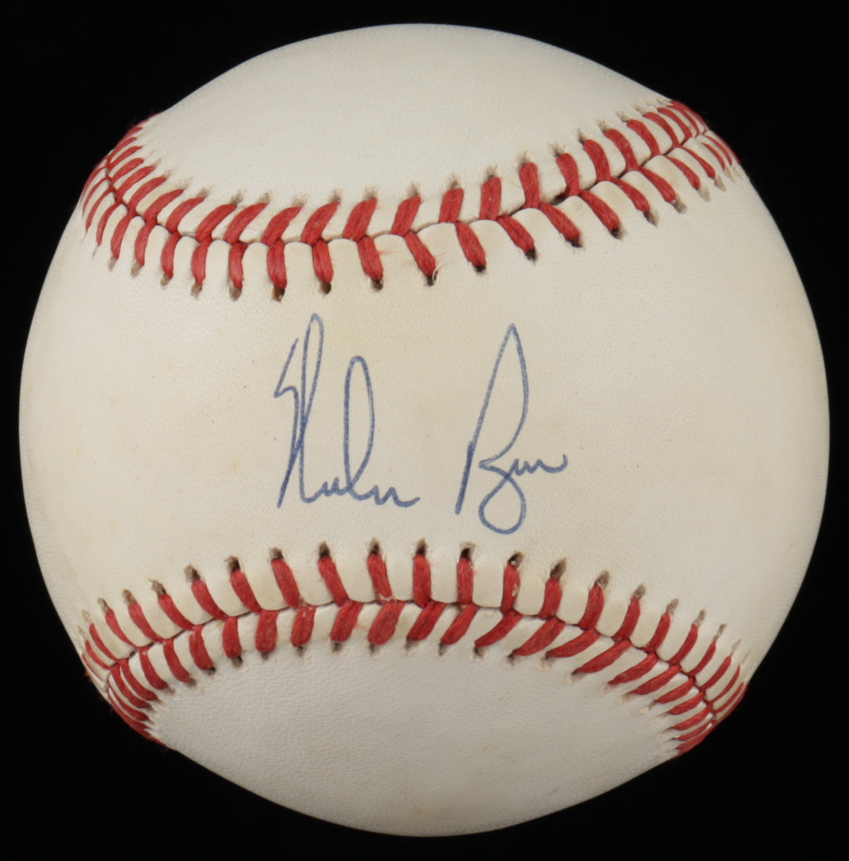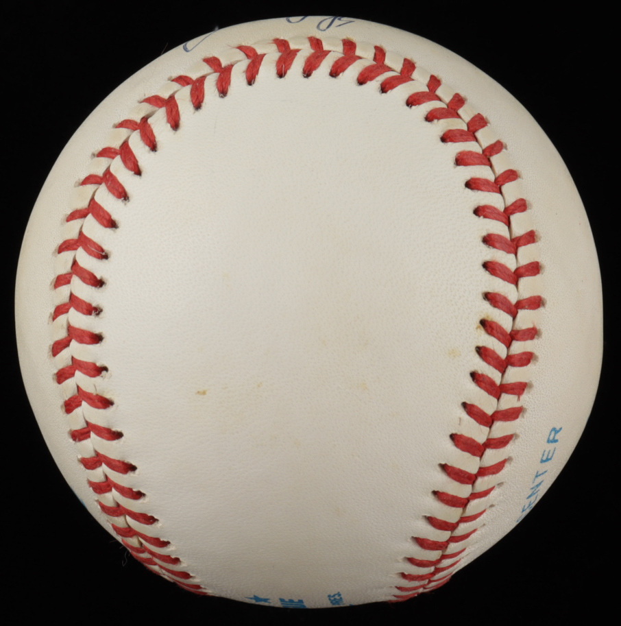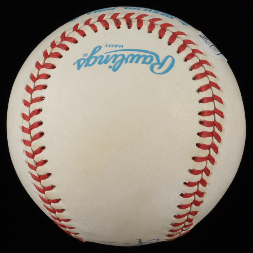 Rawlings Official American League Baseball has been hand-signed by Nolan Ryan (Texas Rangers, HOF). Please note, the baseball shows signs of natural toning.