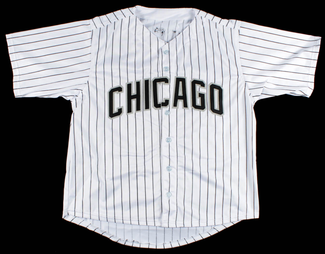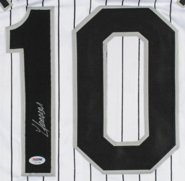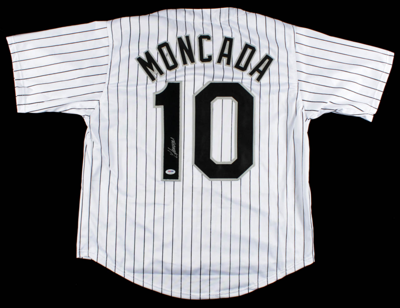 Custom on-field style jersey. Everything is sewn on, size XL. Hand-signed by Yoan Moncada.