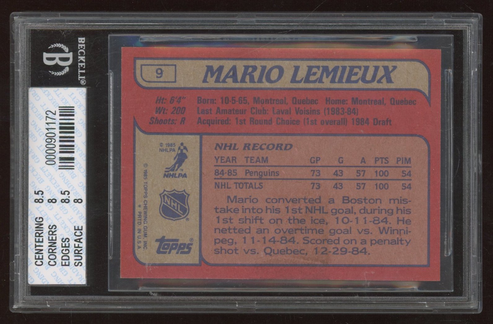 Mario Lemieux 1985-86 Topps #9 RC (BGS 8)