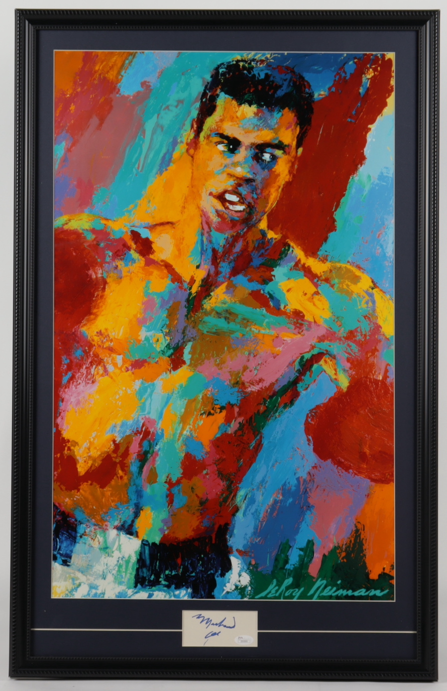 Muhammad Ali Signed 22x34.5 Custom Framed Cut Display with Leroy Neiman "Muhammad Ali" Lithograph (JSA LOA) (See Description)
