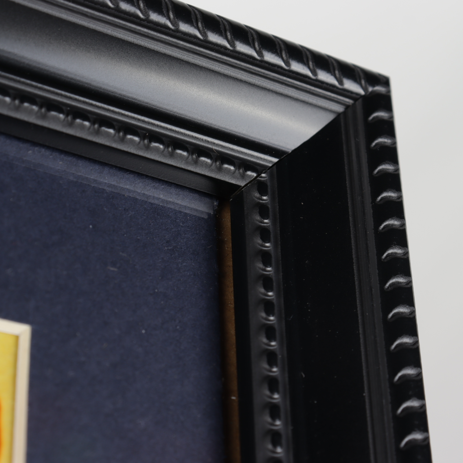 Custom frame measures 22" x 34.5" in size and features a cut that has been hand-signed by Muhammad Ali (D. 2016). Display also features a Leroy Neiman lithograph of Muhammad Ali. Please note, the frame shows signs of wear.