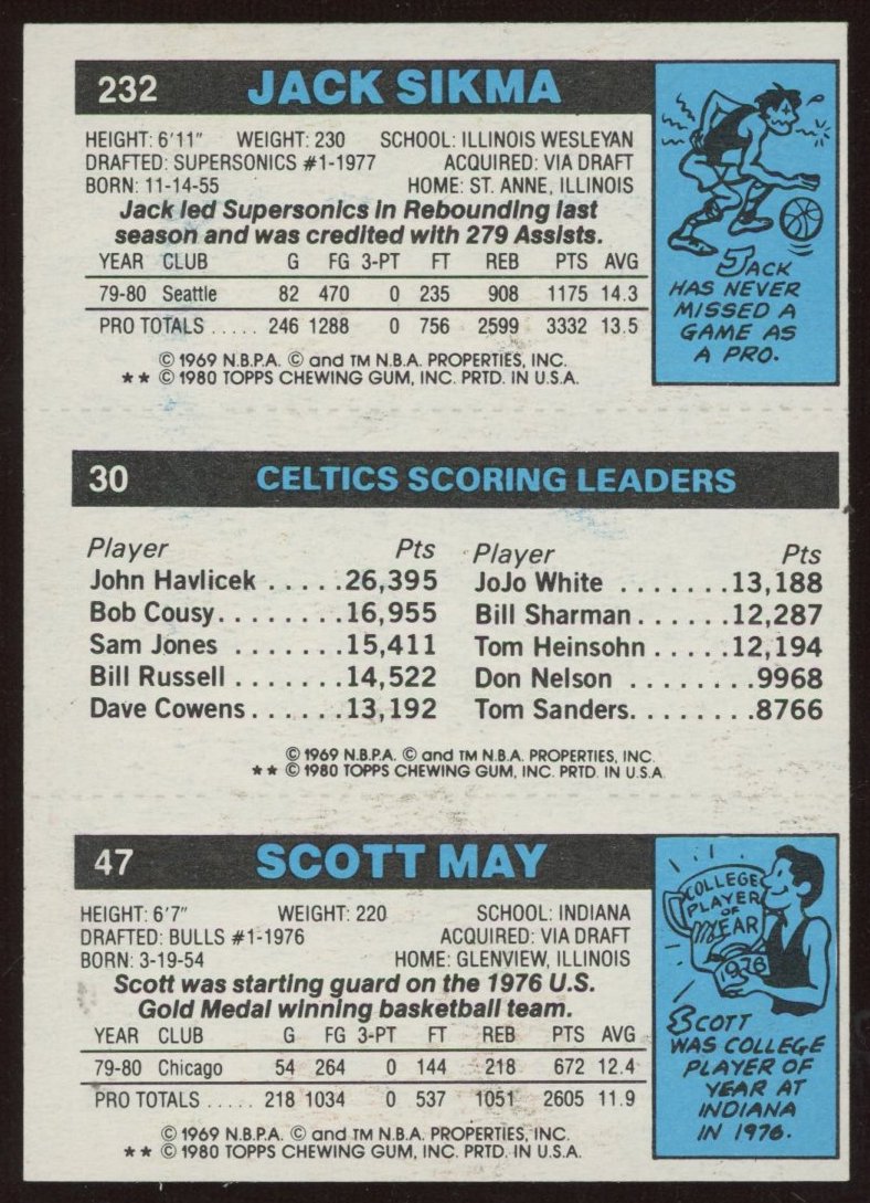47 Scott May / 30 Larry Bird TL / 232 Jack Sikma 1980-81 Topps #98