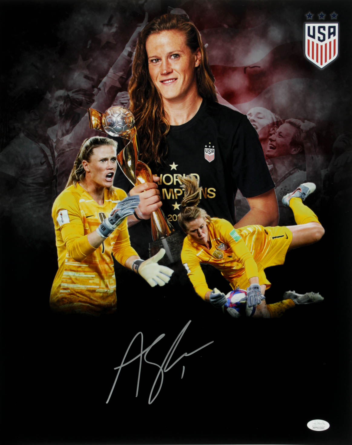 Photo measures 16" x 20" in size and has been hand-signed by Alyssa Naeher.