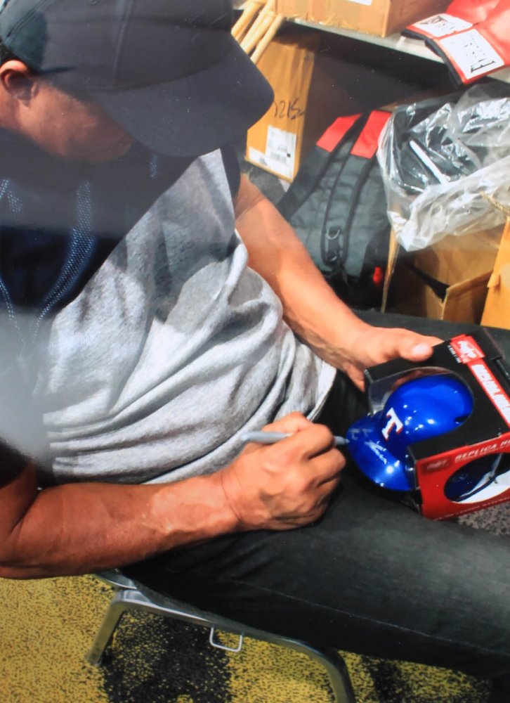 Rawlings Texas Rangers mini batting helmet has been hand-signed by Jose Canseco.
