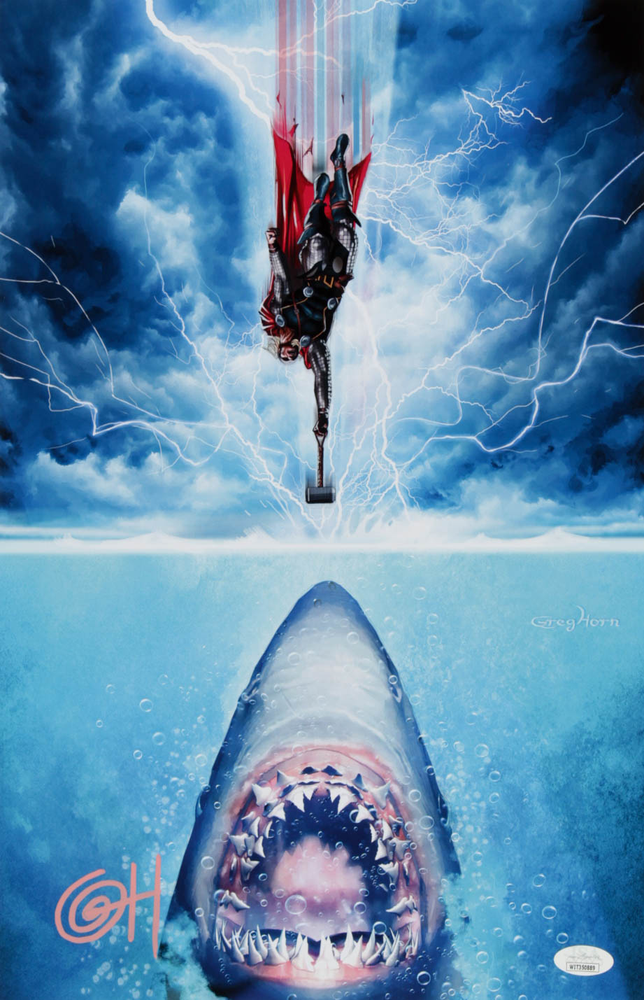 Greg Horn Signed "Thor vs Jaws" 11x17 Lithograph (JSA COA)