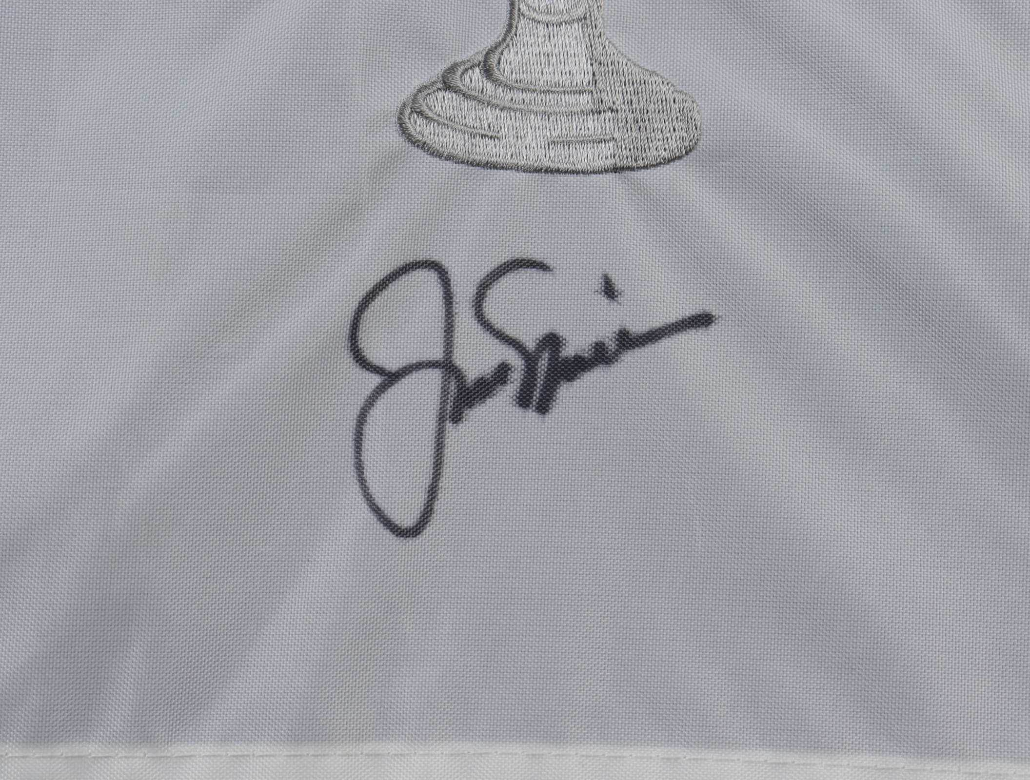 Golf pin flag measures 13.5" x 19.5" in size and has been hand-signed by Jack Nicklaus (HOF).