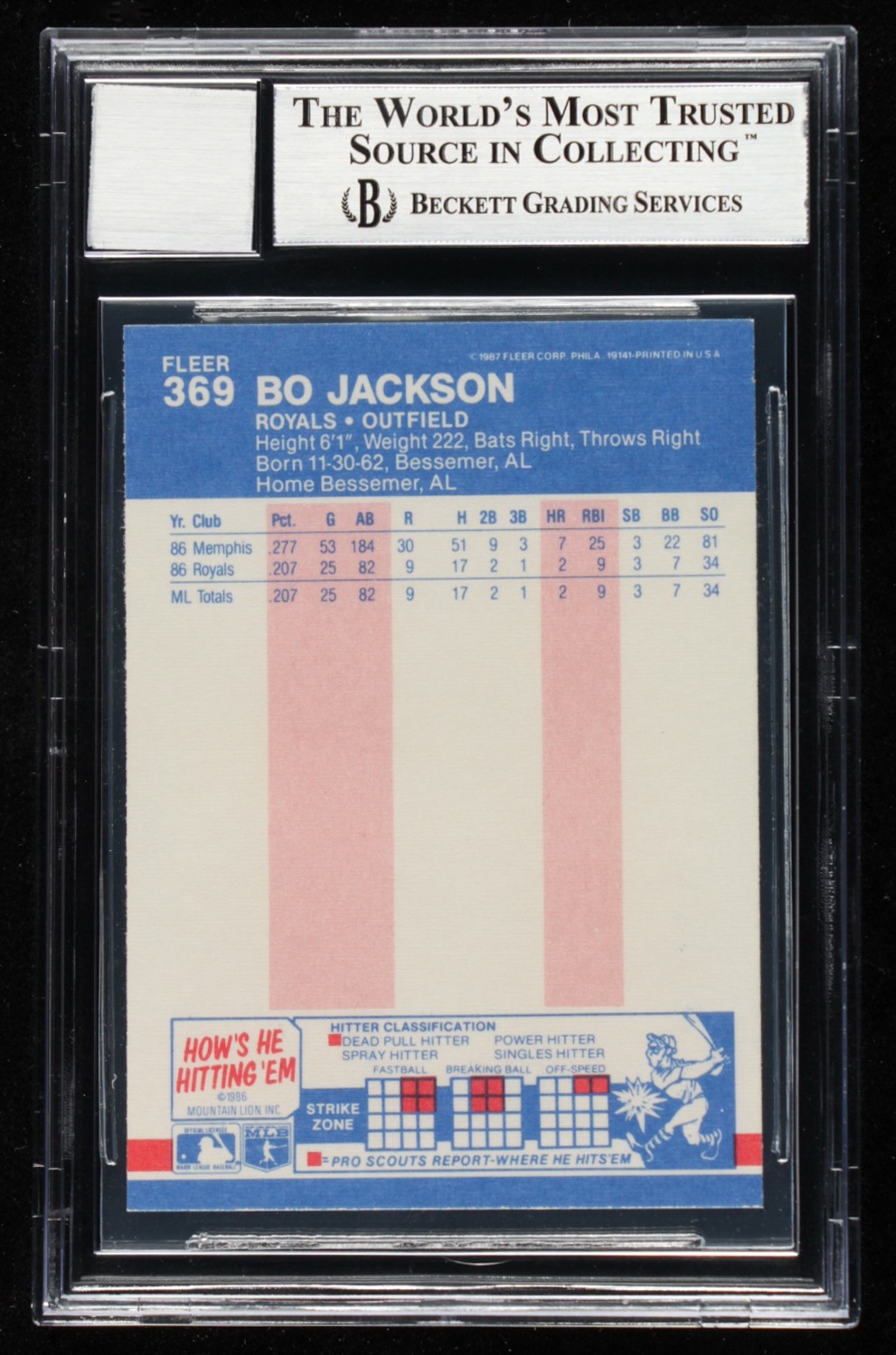 Bo Jackson Signed 1987 Fleer #369 RC (BGS)