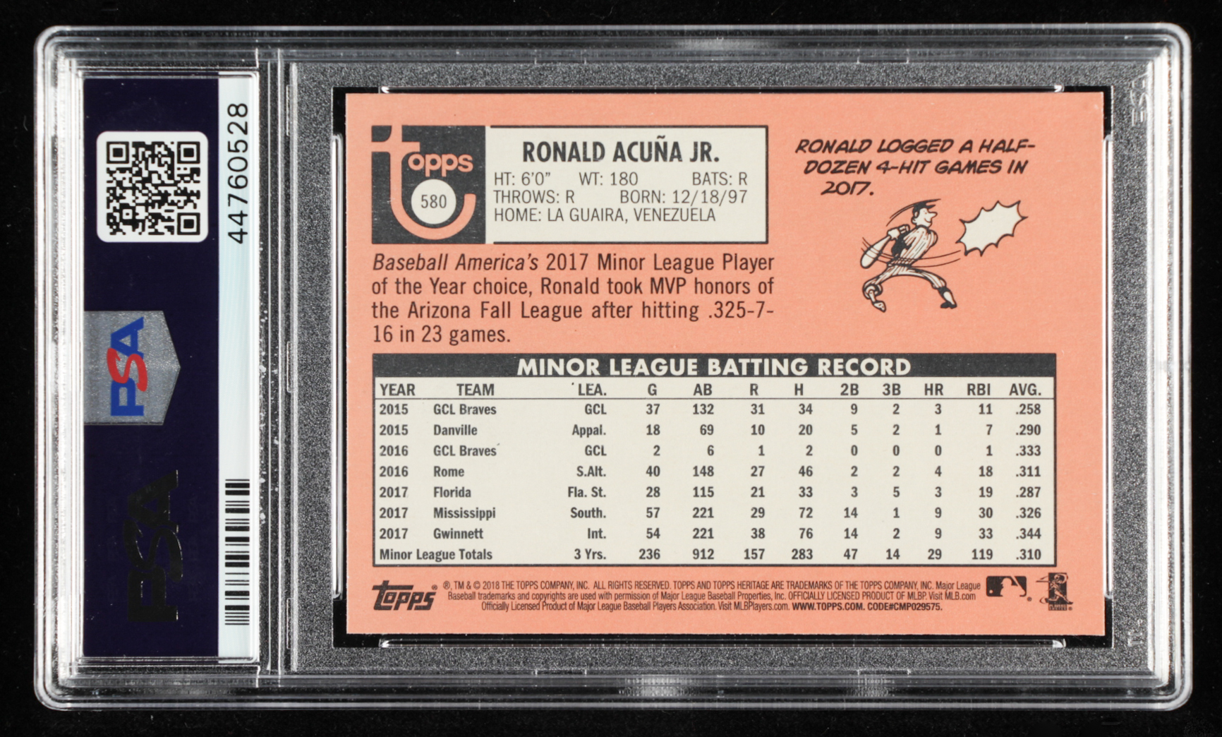 Ronald Acuna Jr. 2018 Topps Heritage #580 RC (PSA 9)