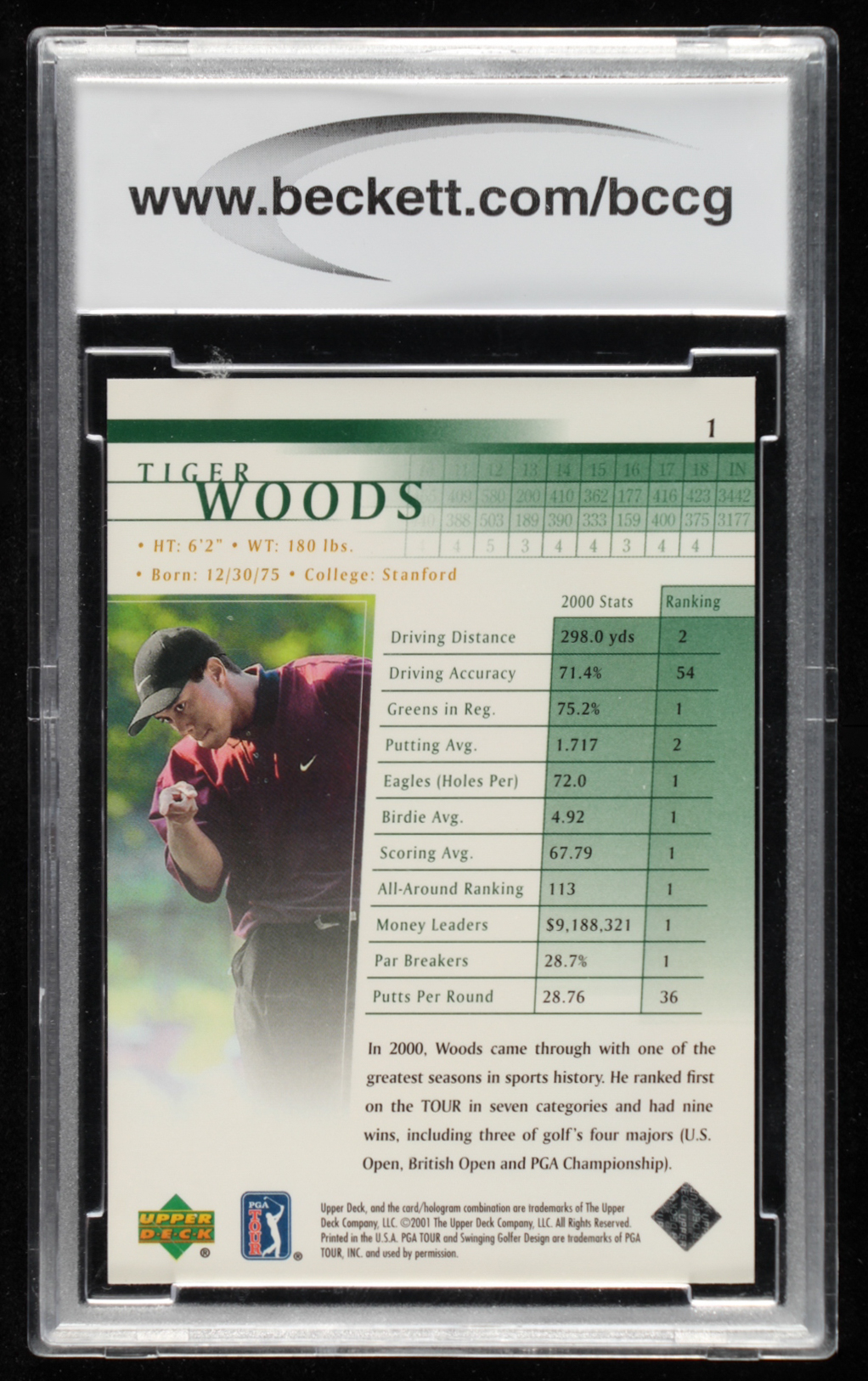 Tiger Woods 2001 Upper Deck #1 RC (BCCG 10)