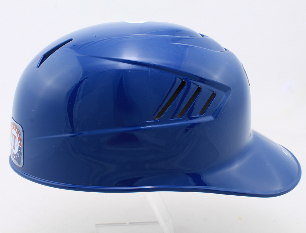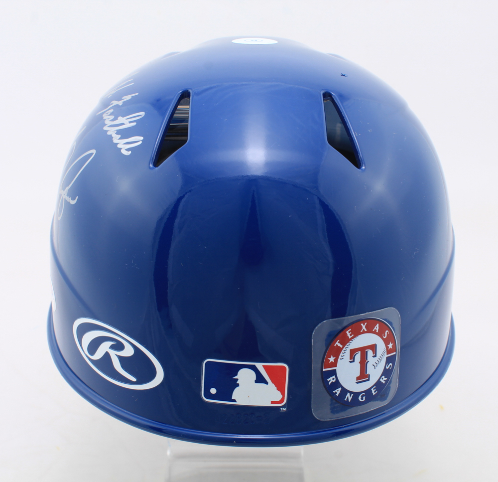 Rawlings MLB Cool Flo Texas Rangers Authentic Full-Size Batting Helmet. Hand-signed and inscribed by Nolan Ryan (HOF). The acrylic display stand is included as shown.